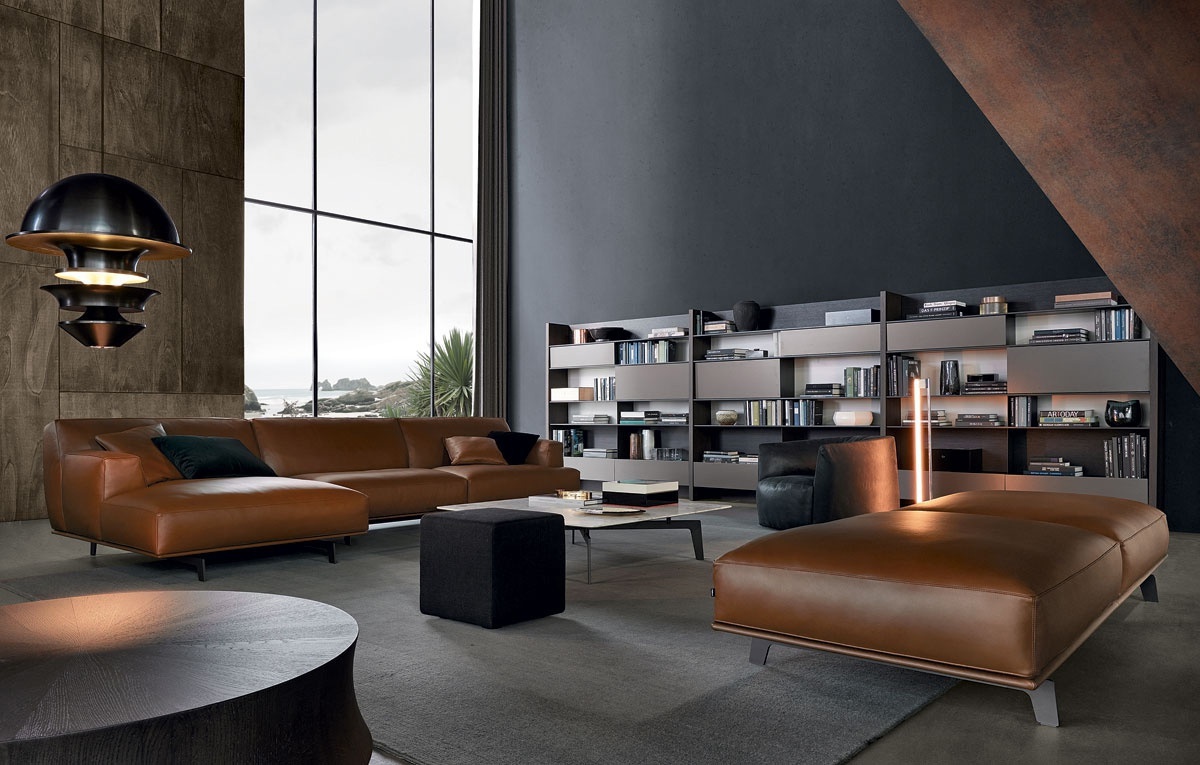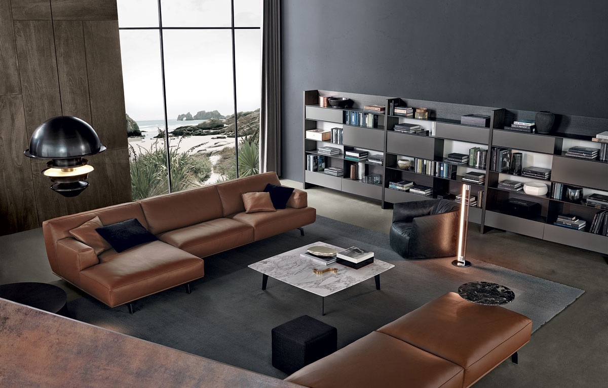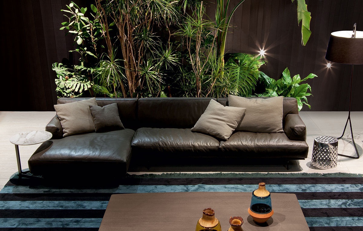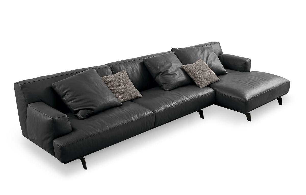 Tribeca modular sofa from Italian manufacturer Polifоrm. The frame is made from wood. The legs are made of metal and painted with bronze paint. The textile upholstery is available in fabric or leather. The backrest and seat filled with dense flexible polyurethane. Design in modern style complemented with decorative pads.