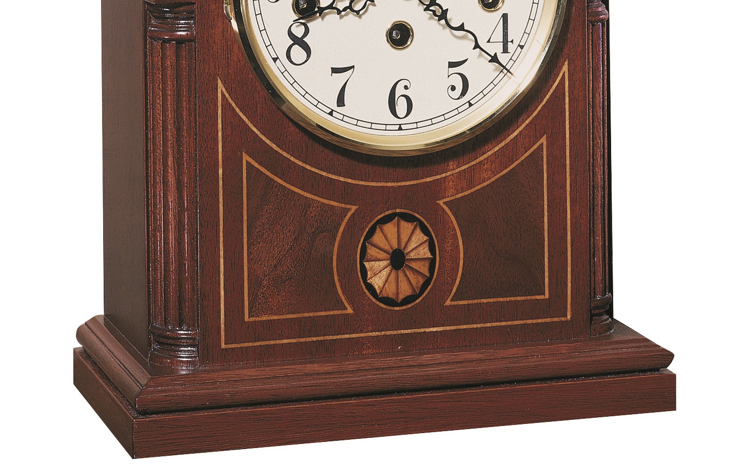 Desktop clock Barrister from the American manufacturer Howard Miller. Elegant carved handmade mahogany frame on a small database - based. The model with Arabic dial. Gold plated rim. Used modern materials and technologies. Modern design attractive to each habitat.