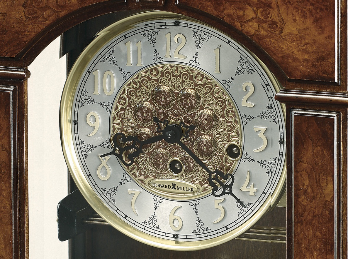 Clocks Emporia from the American manufacturer Howard Miller. The classic model carved handmade case made of hard wood. Beveled crystal sash doors and sides. The decoration of the disc of the dial.
