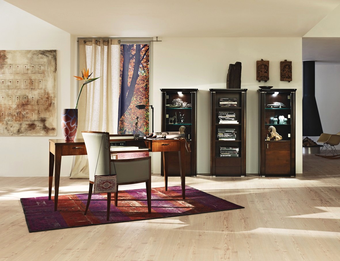 Bookcase with drawers and metal fittings Marilyn from the Italian manufacturer Selva. Bookcase in a contemporary style. The frame is made of basswood, finished with veneer of cherry. The model has two drawers and three adjustable wood shelves. Decorative hardware made of brushed metal. Very stylish, modern bookcase Marilyn for those who appreciate the quality and design.