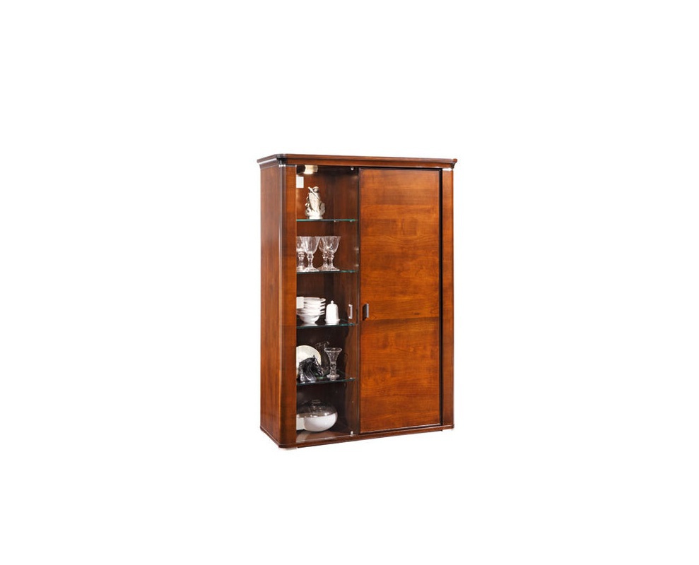 A display Cabinet with internal lighting Marilyn from the Italian manufacturer Selva. A display Cabinet in a contemporary style. Has two doors - glass and wood, inside on the four adjustable shelves. The frame is made of basswood, finished with veneer of cherry. Decorative inlays are made of brushed metal. There is a version with right-hand or left opening, with backlight and without backlight. A display Cabinet, Marilyn is a unique decoration of Your house.