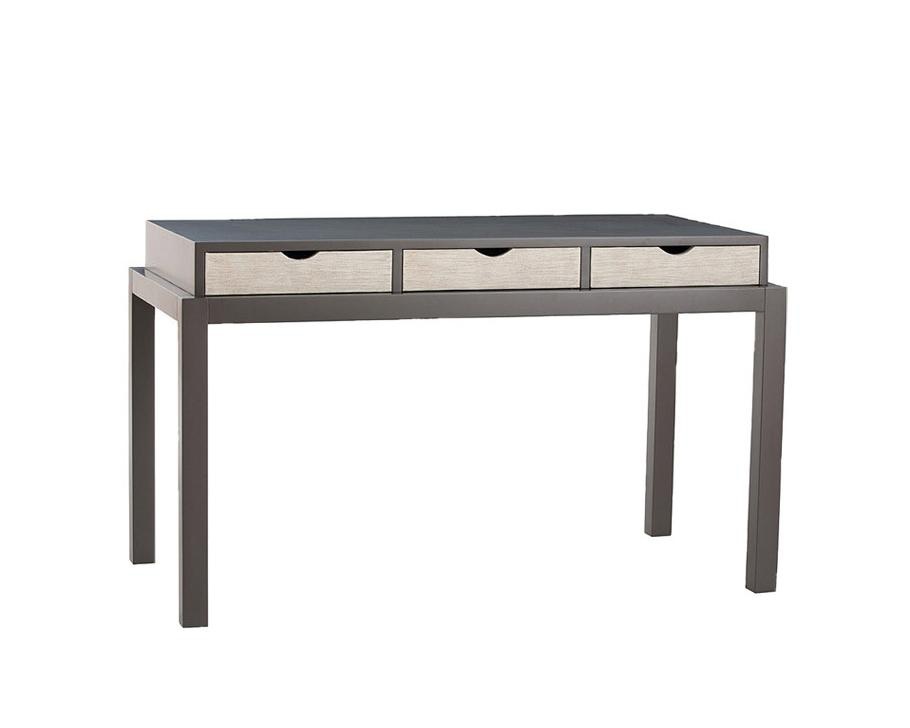 Lincoln writing Desk from an American manufacturer DwellStudio. The clean lines and shallow silhouette of this designer table easily fits in any modern interior. Legs, the tabletop and three drawers crafted from wood and painted in the color of the rock dove, front Desk finished in white. Comfortable, functional writing Desk, decorate a room, nursery or a teen room. The company DwellStudio is one of the most innovative brands in the field of production of modern furniture, bedding accessories and home decor. In furniture production the company uses only materials that meet the requirements of CARB. Each new collection company DwellStudio extends the aesthetic boundaries of contemporary design furniture.