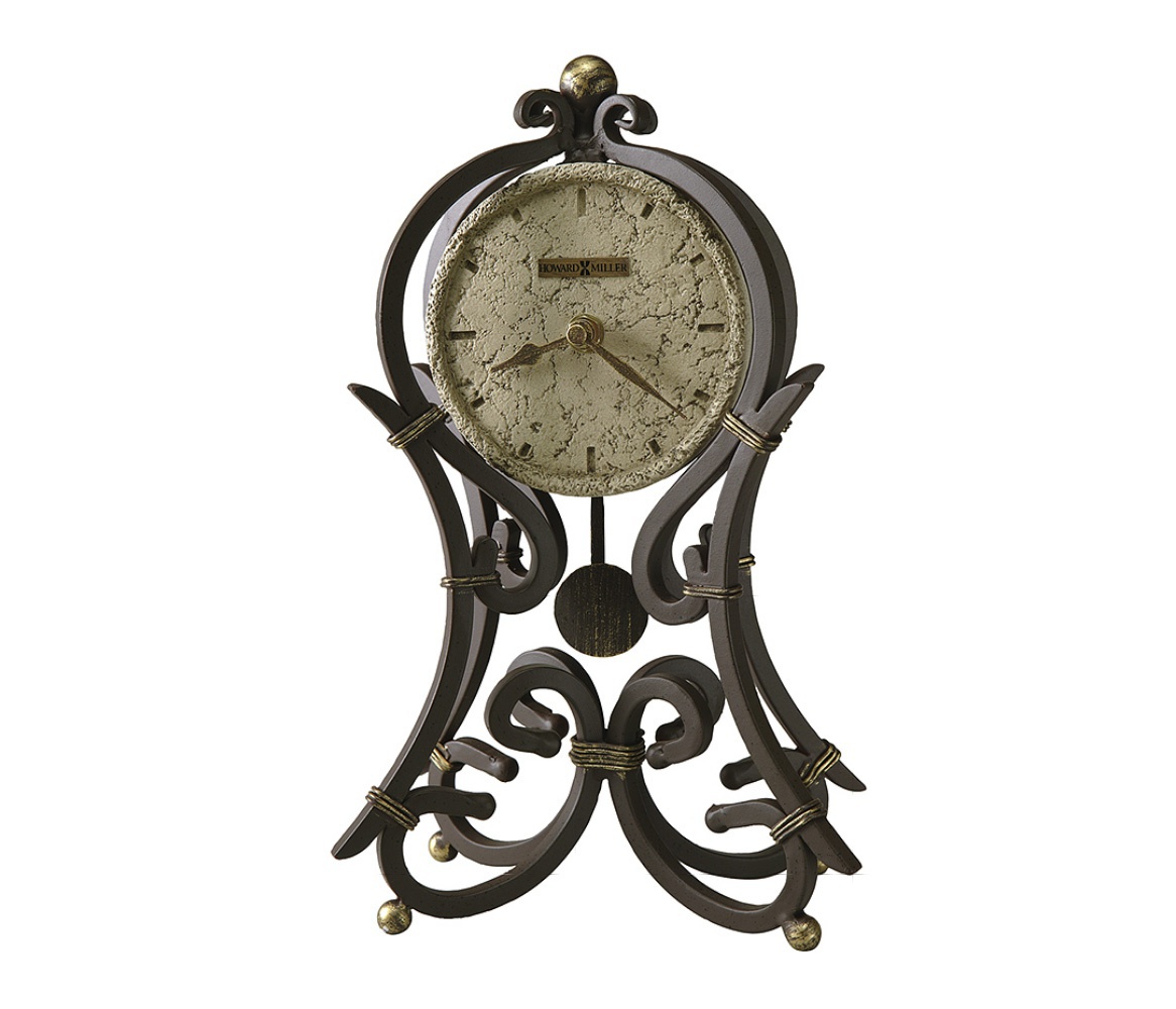 Vercelli Mantel table clock from an American manufacturer Howard Miller. Elegant wrought-iron frame handmade. The model with the dial in a stone building. Used modern materials and technologies. Attractive design for each habitat.