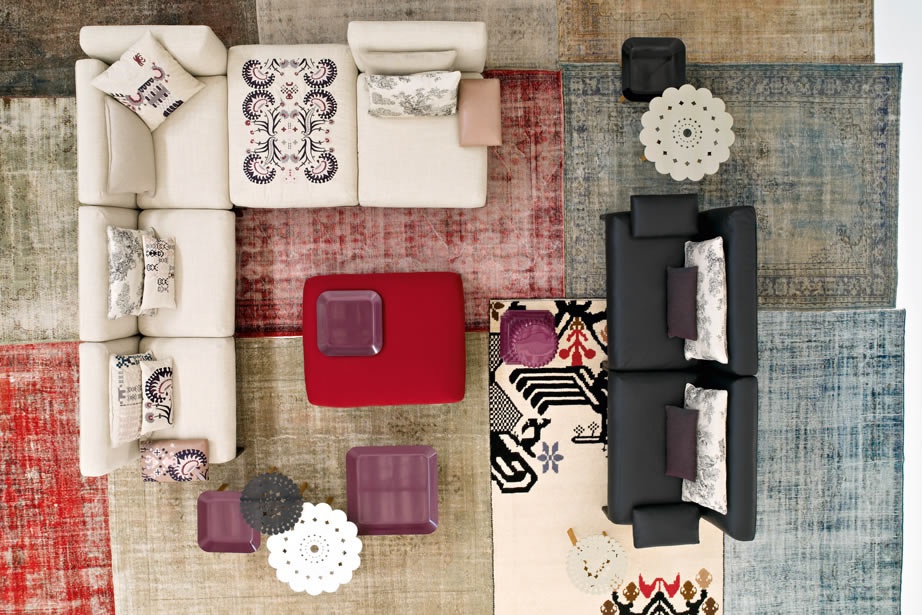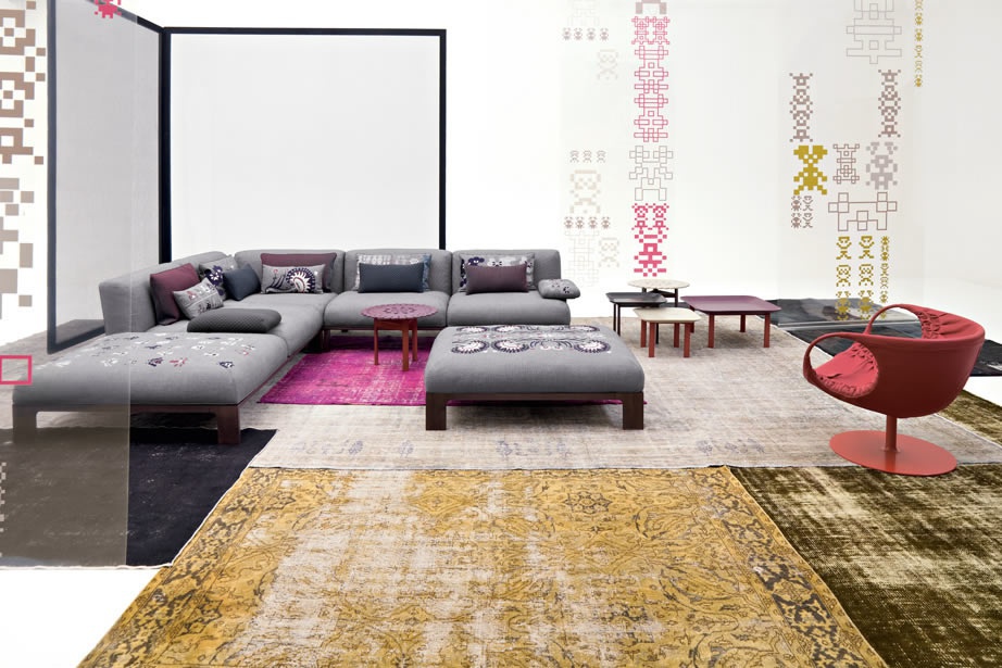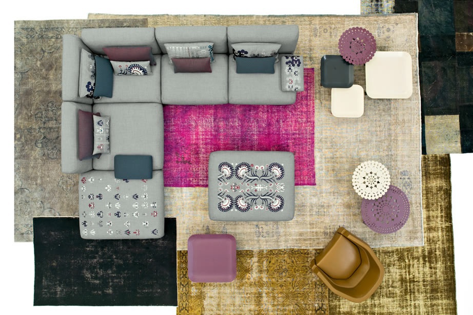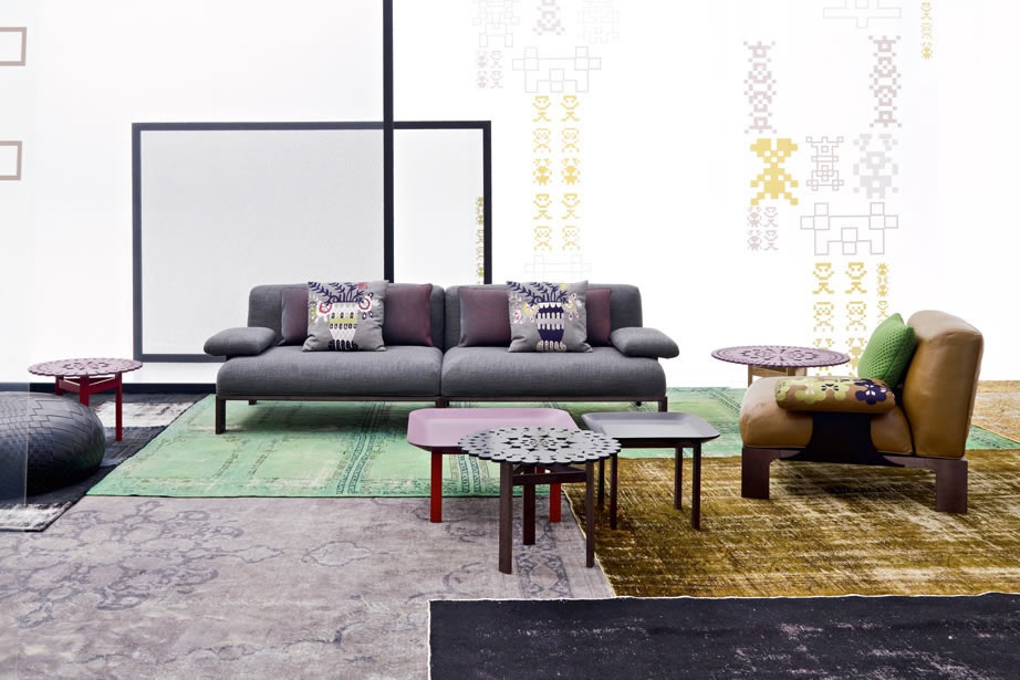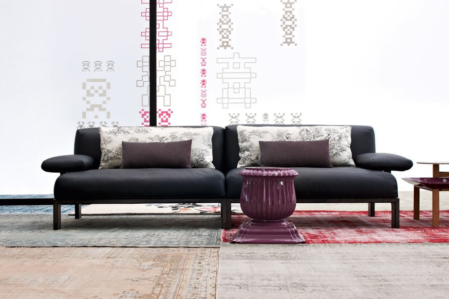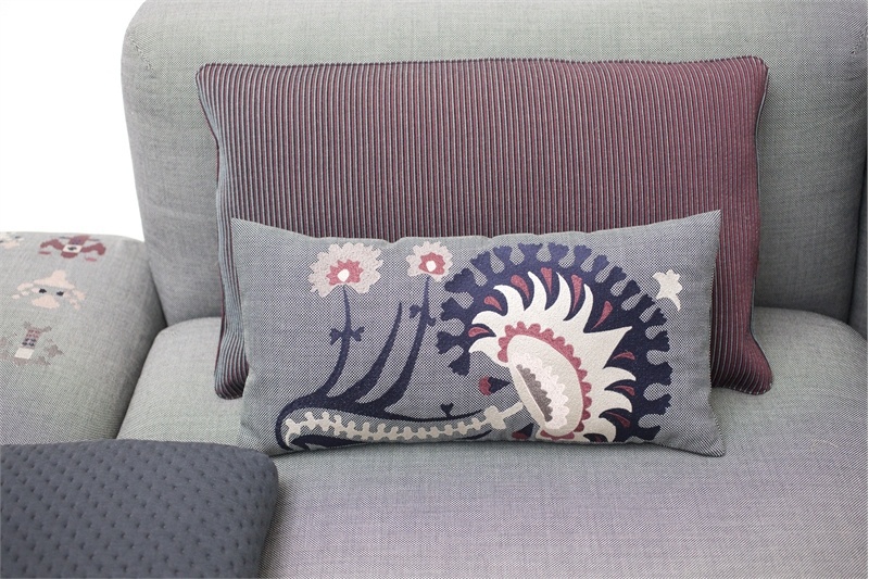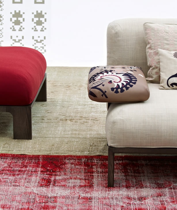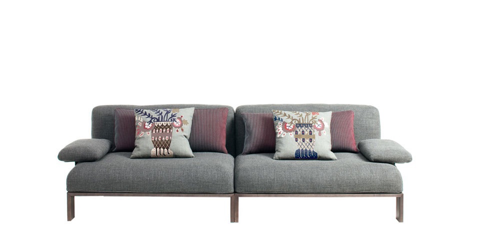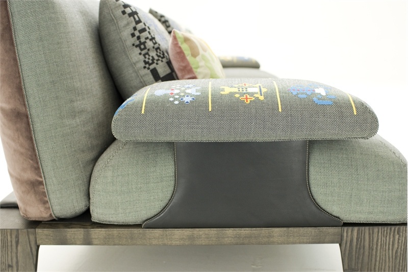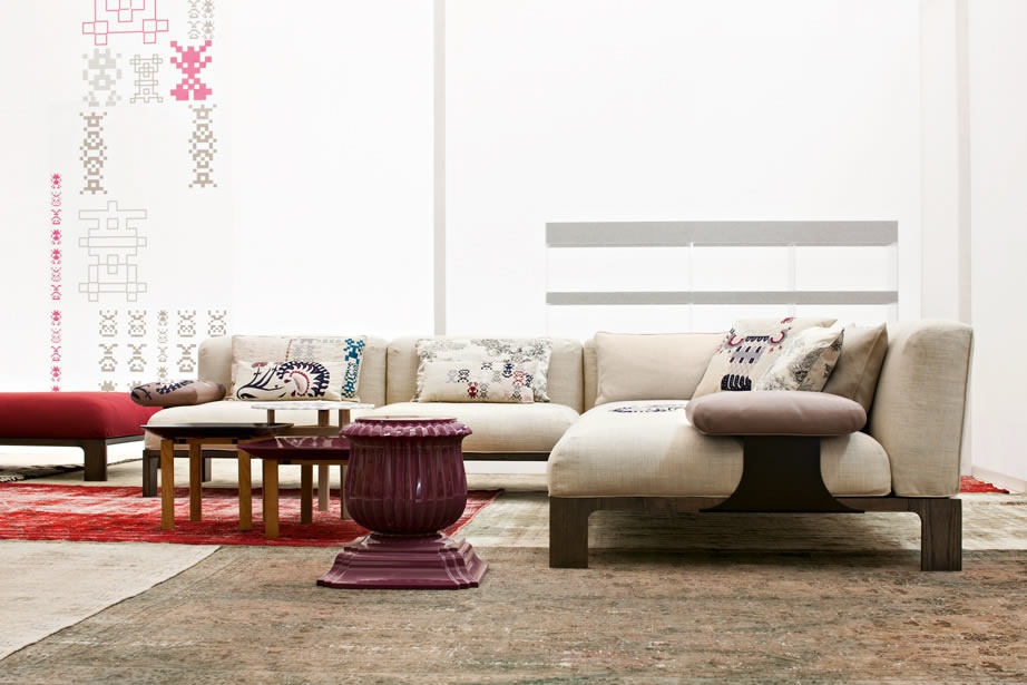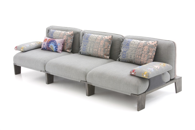 The Fergana sofa for the Italian manufacturer Moroso. The Fergana collection designed by designer Patricia Urkiola (Patricia Urquiola) after traveling through Central Asia. The author proposes to arrange the interior according to the example of the Eastern dwelling and the system to be placed seat in the center of the room, to create soft "island". The removable cushions and armrests can be any song or pick up a ready option from the catalog. The frame is made from natural ash wood finish to choose from the collection of the manufacturer. The supports of the backrests and armrests are made of steel in black color with a matte finish. Filler seat cushions and armrests made of goose feather. Removable padding in the combined solid and patterned textiles, leather embroidered traditional Uzbek ornament. A great, multi-purpose solution for your living room.