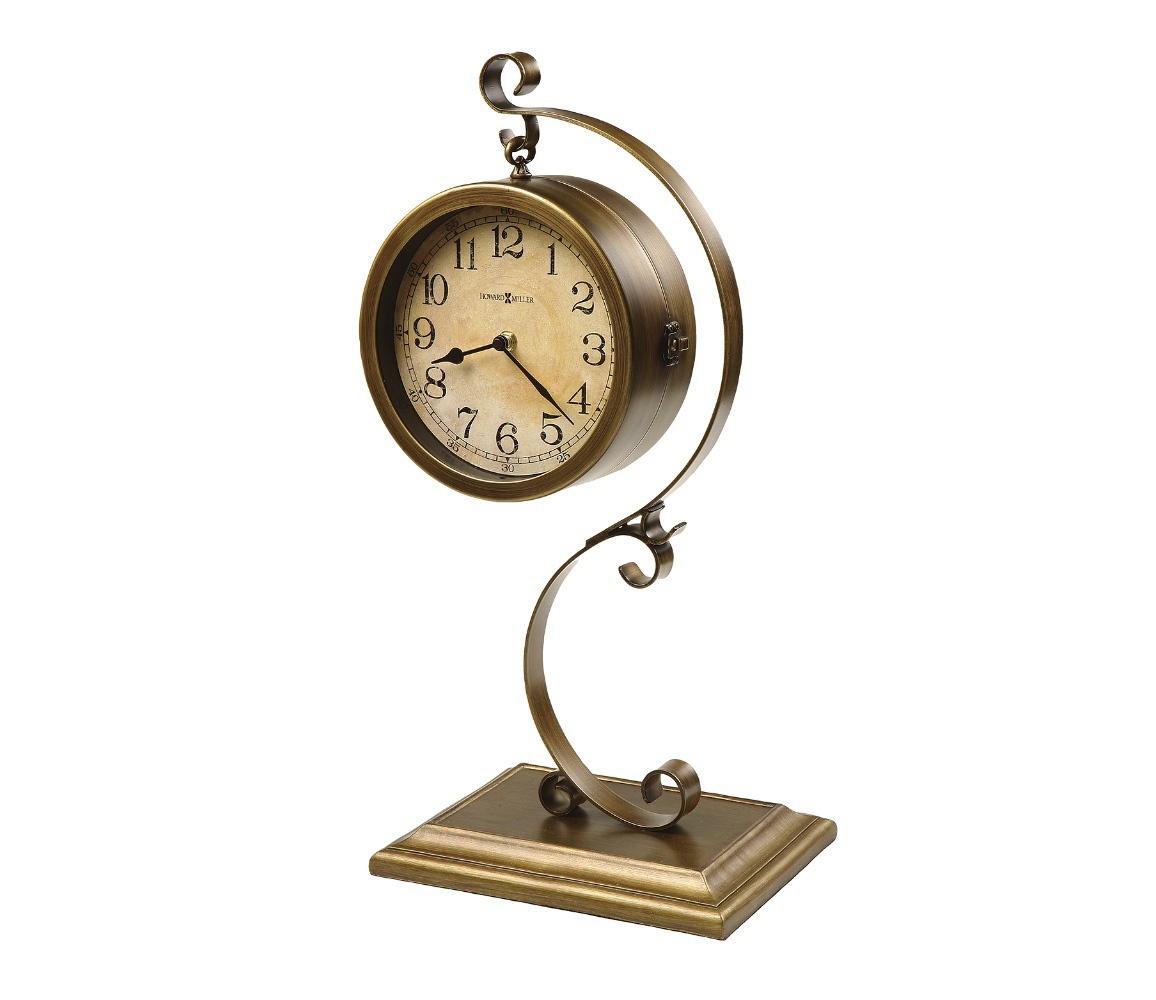 Jenkins table clock from an American manufacturer Howard Miller. Elegant wrought-iron frame is handmade on the basis of the database. The two-way model with Arabic dial in a metal case. Finish gold plated or silver plated. Door with crystal glass. Used modern materials and technologies. Attractive design for each habitat.