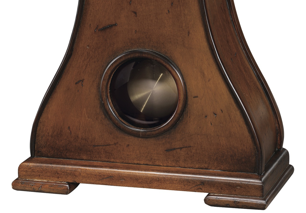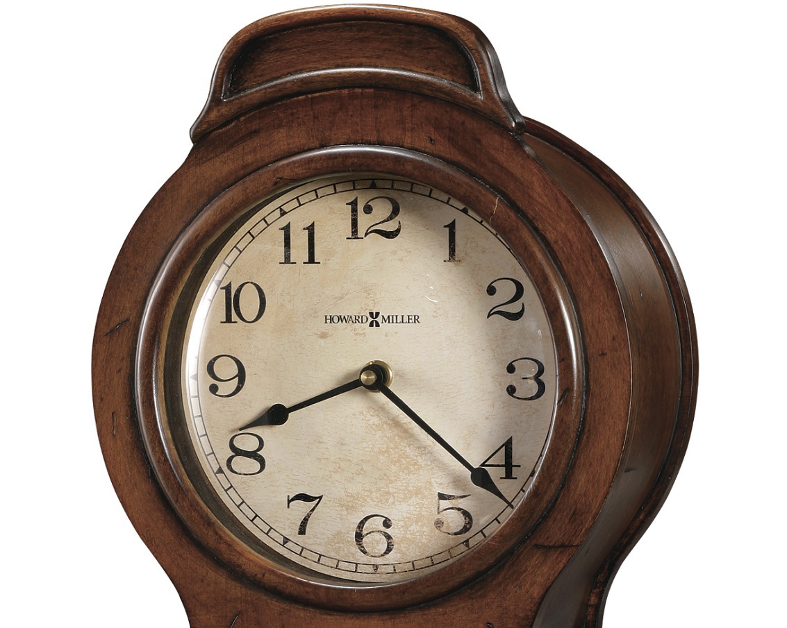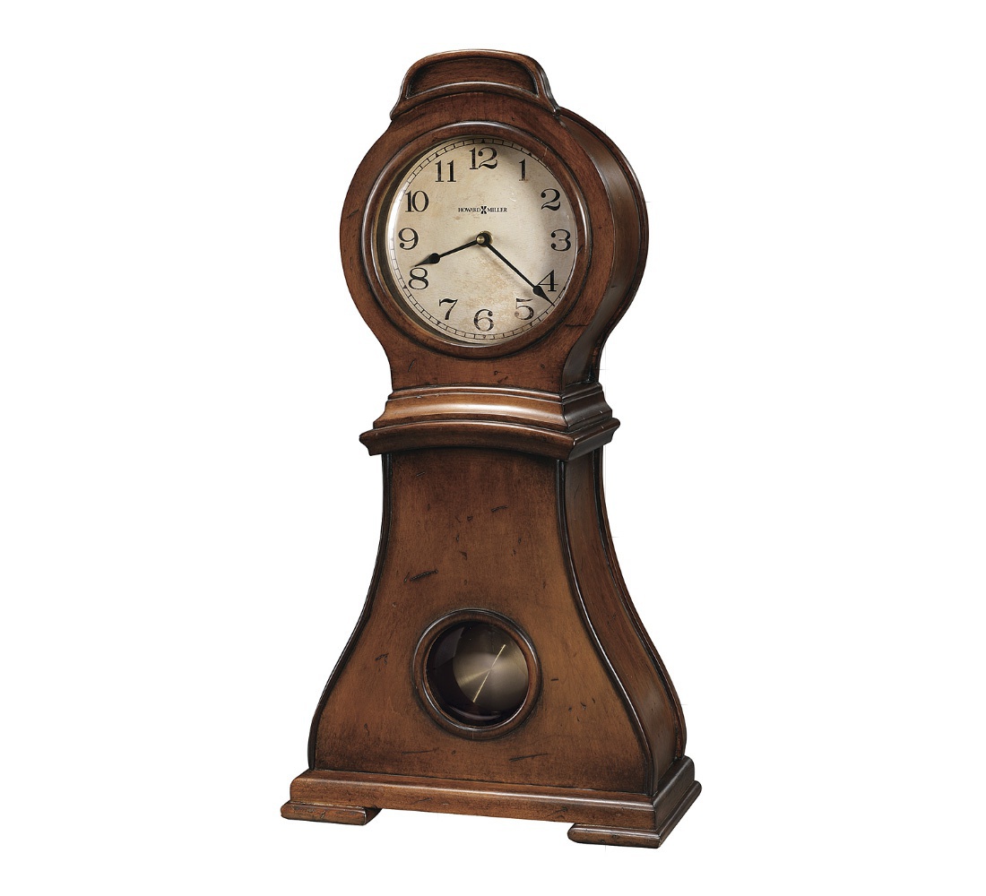 Mallory table clock from an American manufacturer Howard Miller. The classic model carved handmade case made of hard wood. Arabic dial with enamel. The glass shutters of polished crystal. The pendulum round disk of brass.