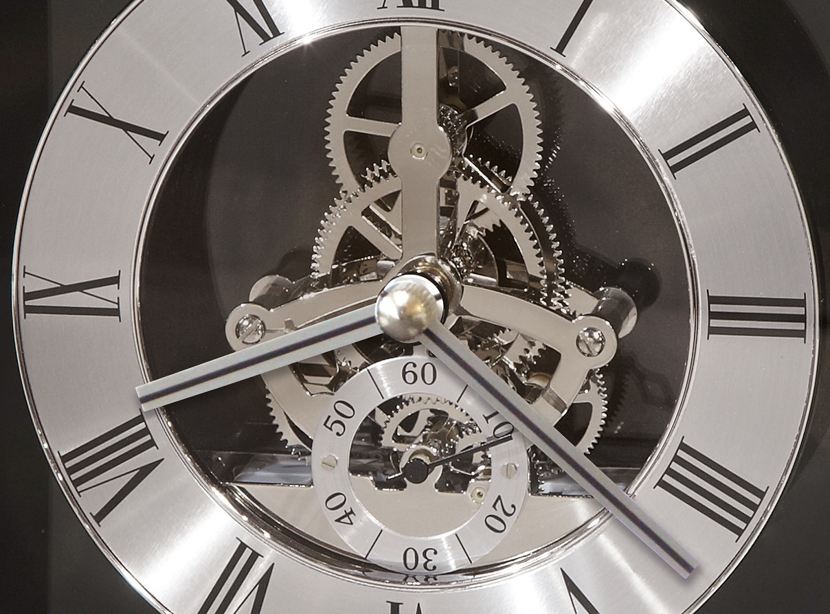 Batavia clocks from the American manufacturer Howard Miller. High-precision mechanism. Frame made of wood with a dark finish on the Cabinet. Mechanics are a Central element of the design. Complex design the design of an open chrome-plated mechanism. Roman dial on a circle of polished silver. Sash of polished crystal.