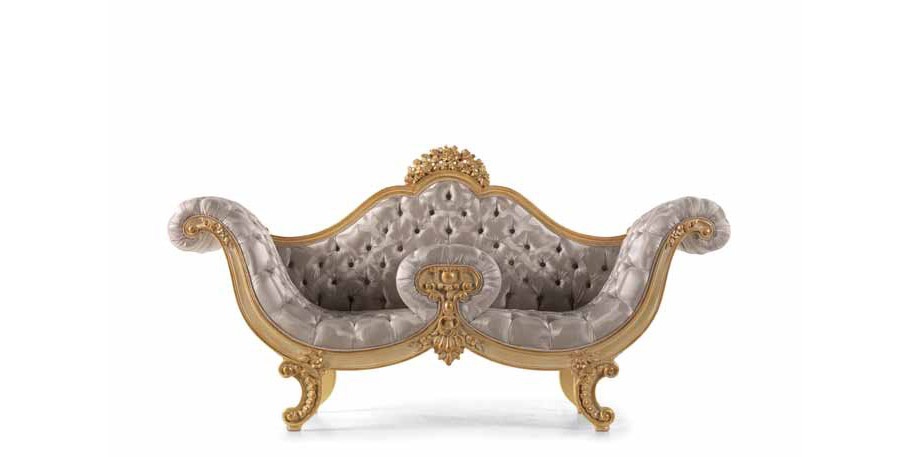A double sofa from Italian manufacturer Jumbo Collection. Model from the collection of Hermes, executed in classical style. Frame made of solid wood. Upholstery - textiles. Decor handmade, quilted upholstery. The sofa has a high back and soft armrests.