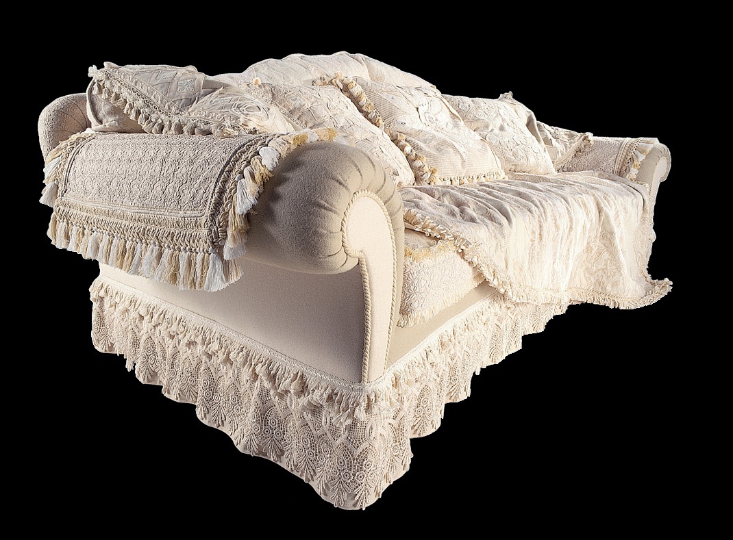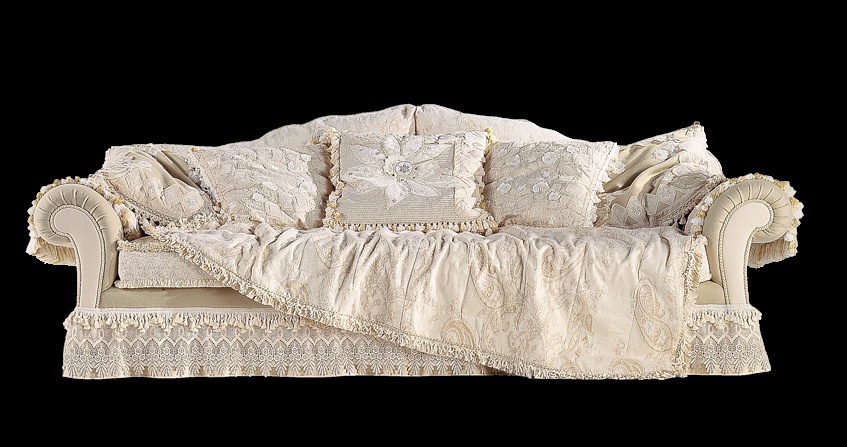 Three seater sofa from Italian manufacturer Jumbo Collection, collection Lace. Model in the classic style, frame made of natural wood, upholstery - textiles from the company portfolio. Colours in stock.