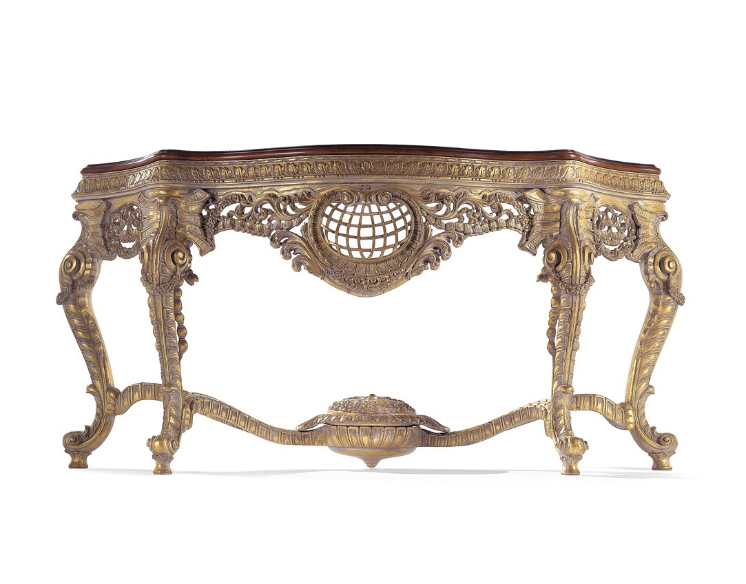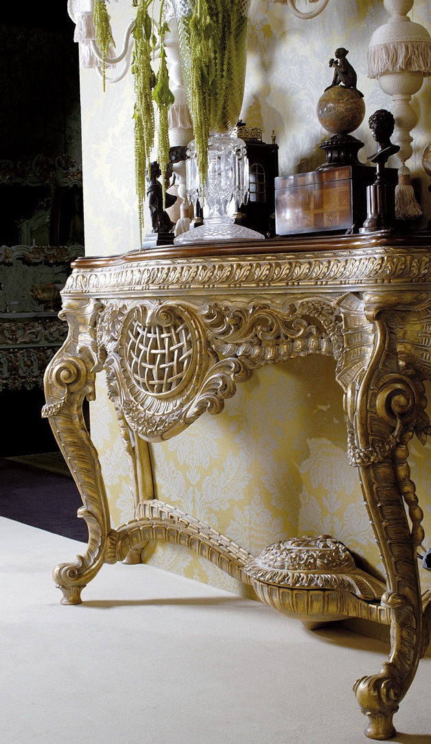 The console is natural wood from Italian manufacturer of Lace, the collection is Canova. The frame is made from natural wood carving - handmade in gold plated finish. Colours in stock.