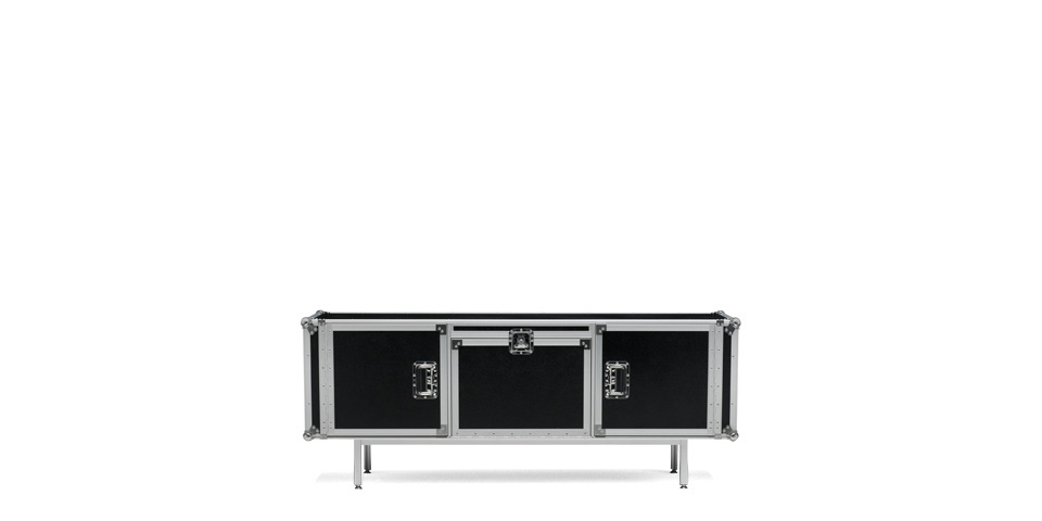 Total Flightcase stand from Italian manufacturer Moroso. Frame made of extruded aluminium and laminated plywood. The handles in the finish of their chrome-plated steel. Factory offering color in white, black and in color of white concrete. Design solution for your interior.