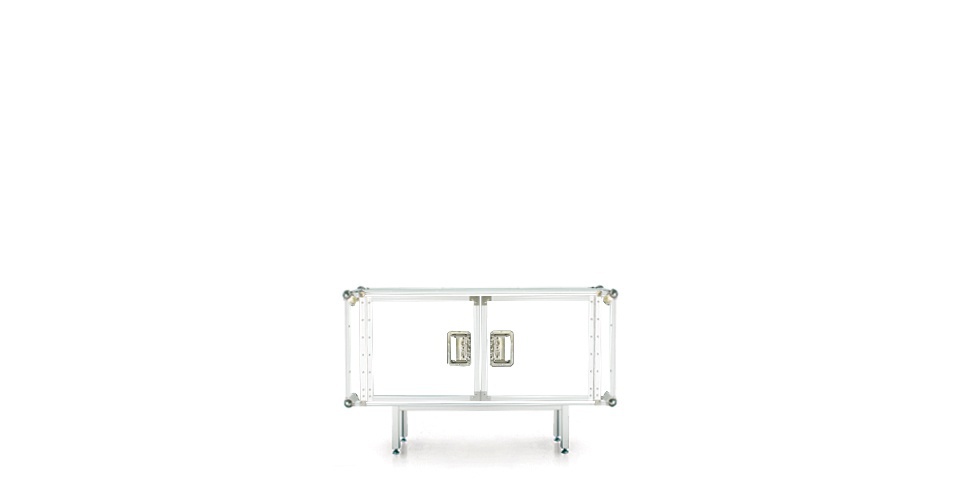 Total Flightcase stand from Italian manufacturer Moroso. Frame made of extruded aluminium and laminated plywood. The handles in the finish of their chrome-plated steel. Factory offering color in white, black, blue and white in color concrete. Design solution for your interior.