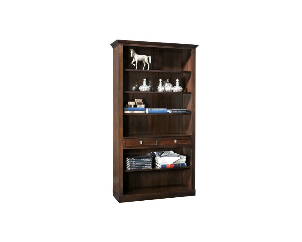 A bookcase with open shelves and drawers Sophia from the Italian manufacturer Selva. Modern Cabinet from Linden, finish is cherry veneer. The model has four adjustable wooden shelves and two drawers with self-closing mechanism, veneered birch. Traditional forms, clever combination of classic and modern Cabinet Sophia will give Your living room a unique style.