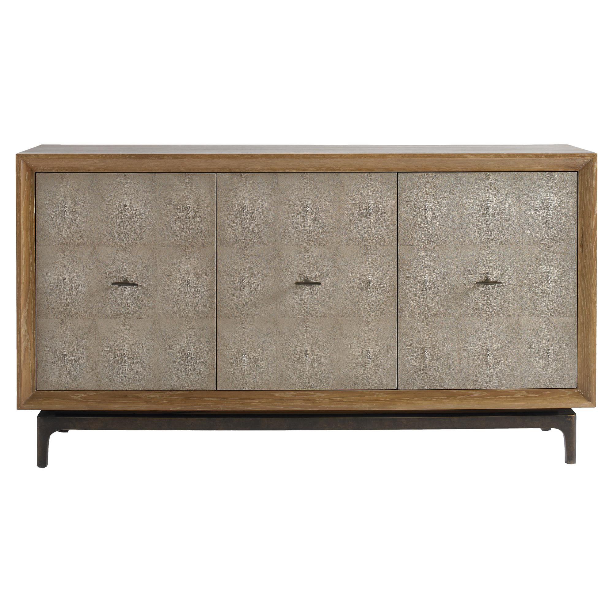 The Claude sideboard from the American manufacturer DwellStudio is made in art Deco style with a modern twist. This small sideboard the Italians called the credenza. He is a Cabinet with double doors, inside there are three compartments for utensils with adjustable shelves. Table top, oak finish, used for serving. The support portion and legs are made from steel. The doors are trimmed in faux leather under shagreen, bronze hardware. The sideboard can be used in any, even a small room where kitchen utensils. The company DwellStudio is one of the most innovative brands in the field of production of furniture, bedding accessories and home decor. In furniture production the company uses only materials that meet the requirements of CARB. Each new collection company DwellStudio extends the aesthetic boundaries of contemporary design furniture.