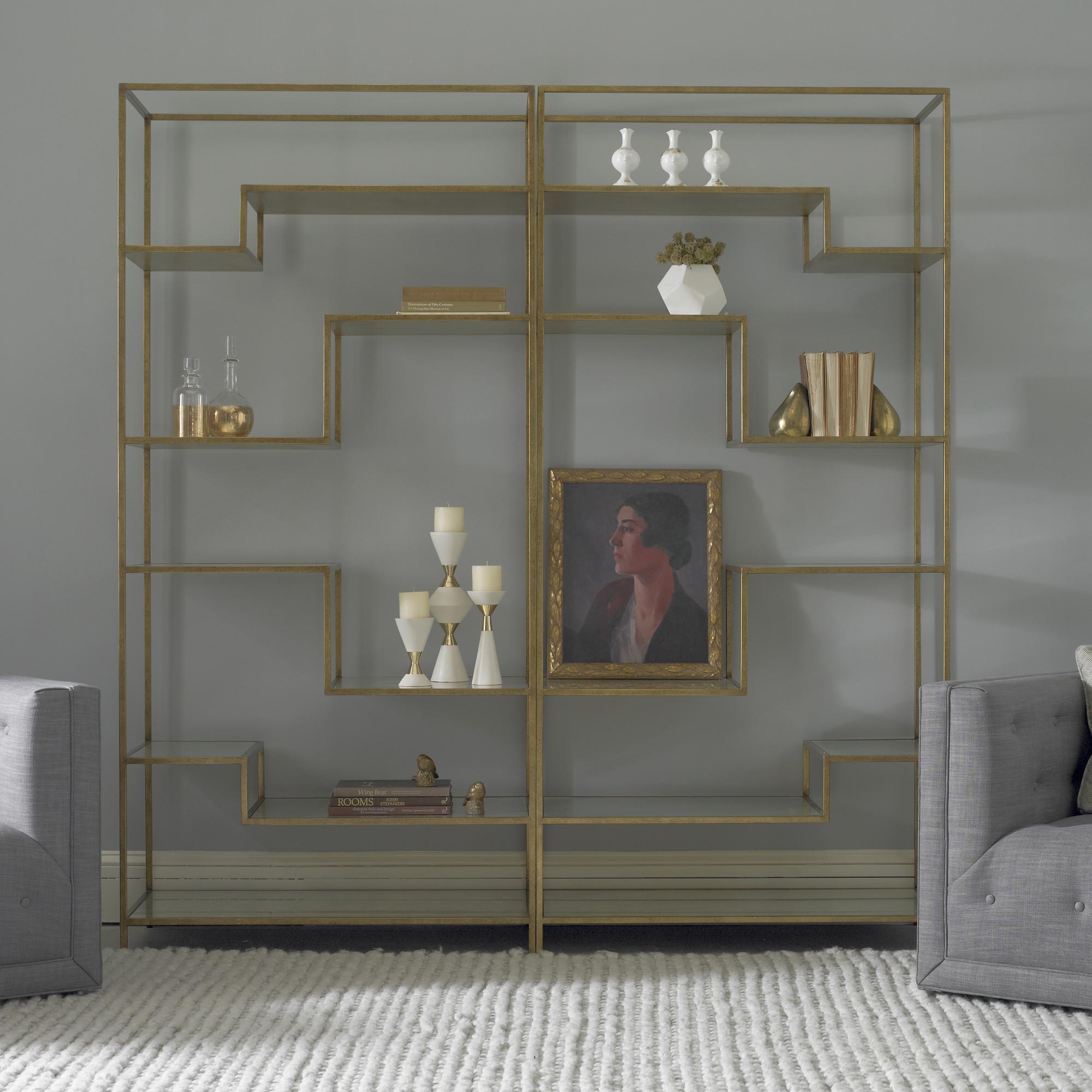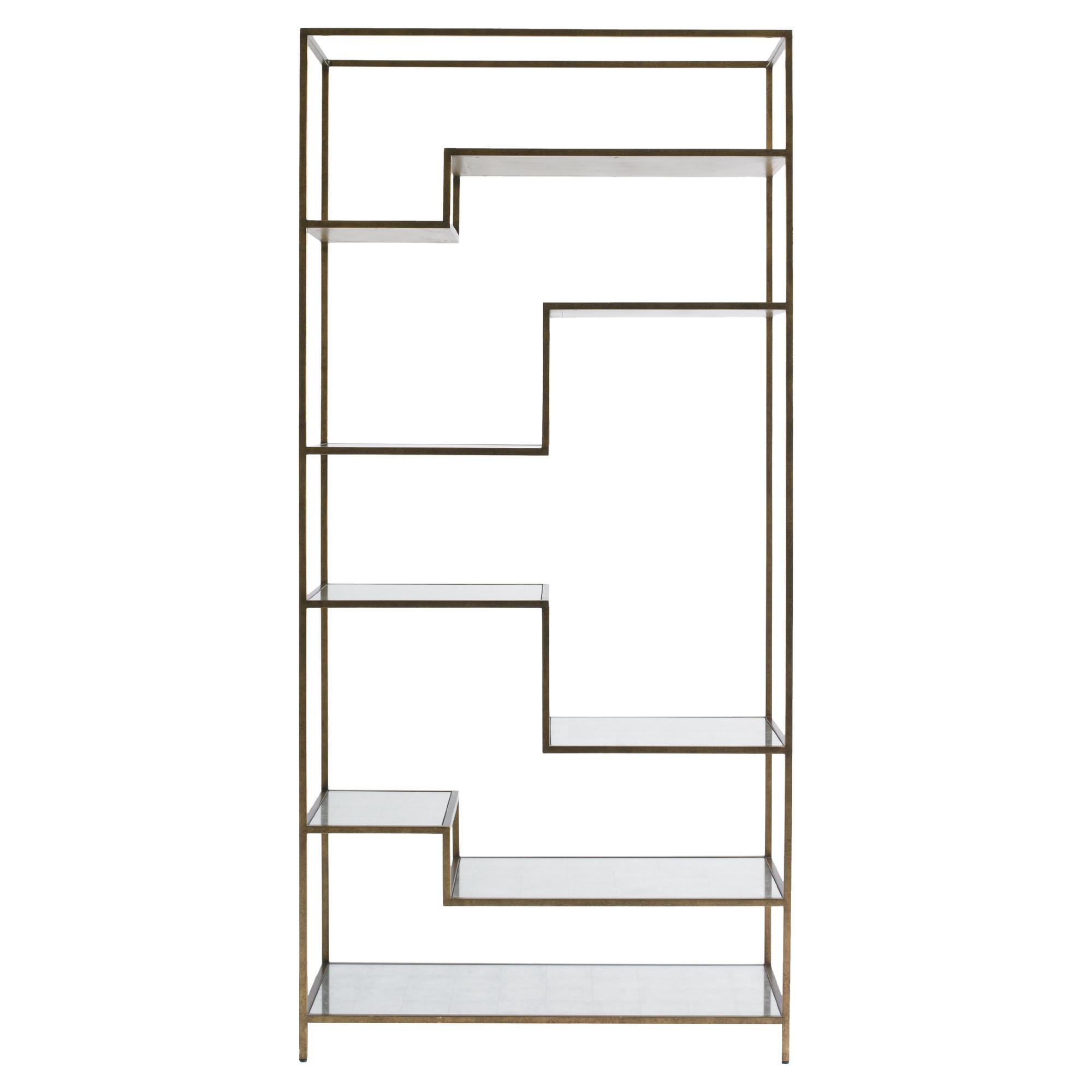 Bookcase Mansfield from the American manufacturer DwellStudio. The model will perfectly fit any modern interior. Abstract geometric frame antique brass holds glass shelves. An elongated silhouette shelves perfect for storing books and decorative objects or collections of objects of art. Combining two stacks, you can get the rack. The company DwellStudio is one of the most innovative brands in the field of production of furniture, bedding accessories and home decor. In furniture production the company uses only materials that meet the requirements of CARB. Each new collection company DwellStudio extends the aesthetic boundaries of contemporary design furniture.