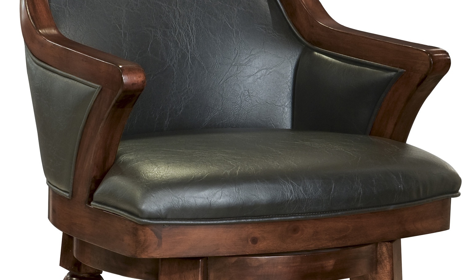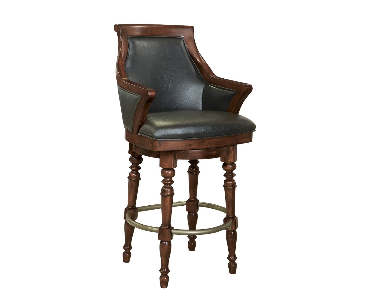 Bar stool with armrests Oliverот American manufacturer Howard Miller. Body carved handmade from wood of firm breeds. The finishing -varnish. The seat and backrest with soft leather upholstery. Pronova from metal. Classic design.