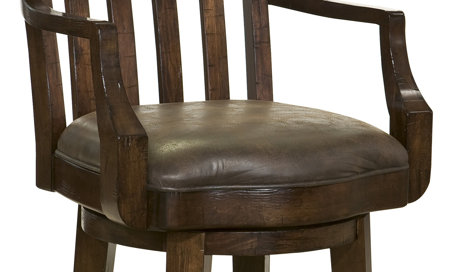 Bar stool with armrests Harbor Springs from the American manufacturer Howard Miller. The case of the oak tree or solid rock. The finishing -varnish. The seat and backrest with soft leather upholstery. Pronova from metal. The modern design. Colors in the catalog range from the manufacturer.