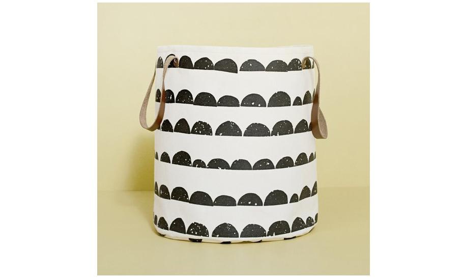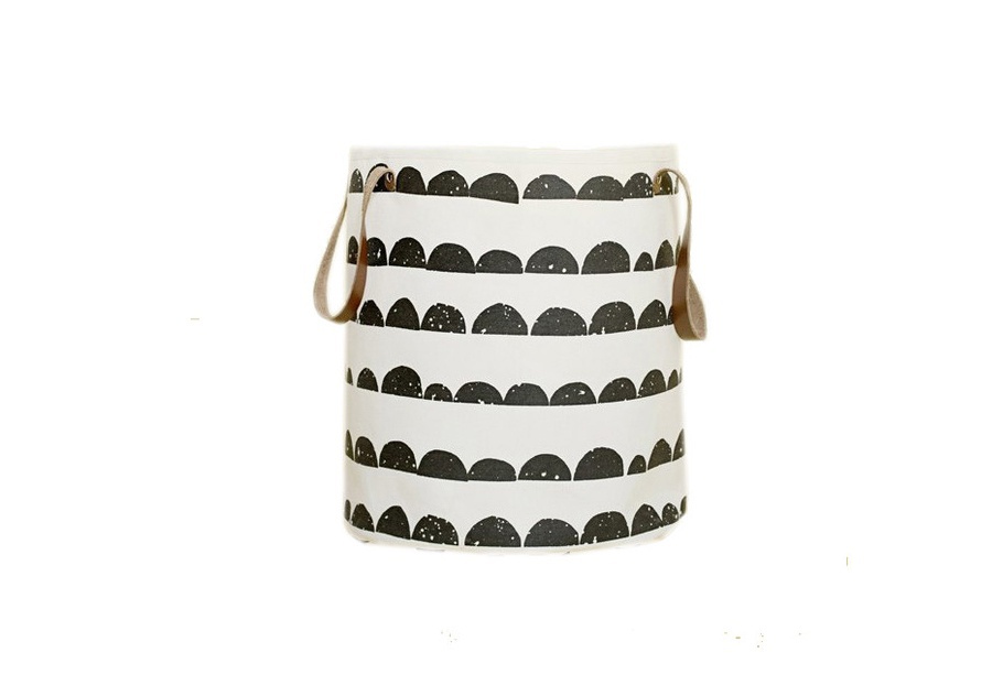Laundry basket Curve from an American manufacturer DwellStudio. Designer basket can become not only a convenient accessory but also a decoration of a nursery, dressing room and even bedrooms. Made of organic cotton, lining paper, two durable leather handles. Foldable basket, black and white, with abstract circular decoration. Baskets are available in two sizes - big and small. The company DwellStudio is one of the most innovative brands in the field of production of modern furniture, bedding accessories and home decor. In furniture production the company uses only materials that meet the requirements of CARB. Each new collection company DwellStudio extends the aesthetic boundaries of contemporary design furniture.