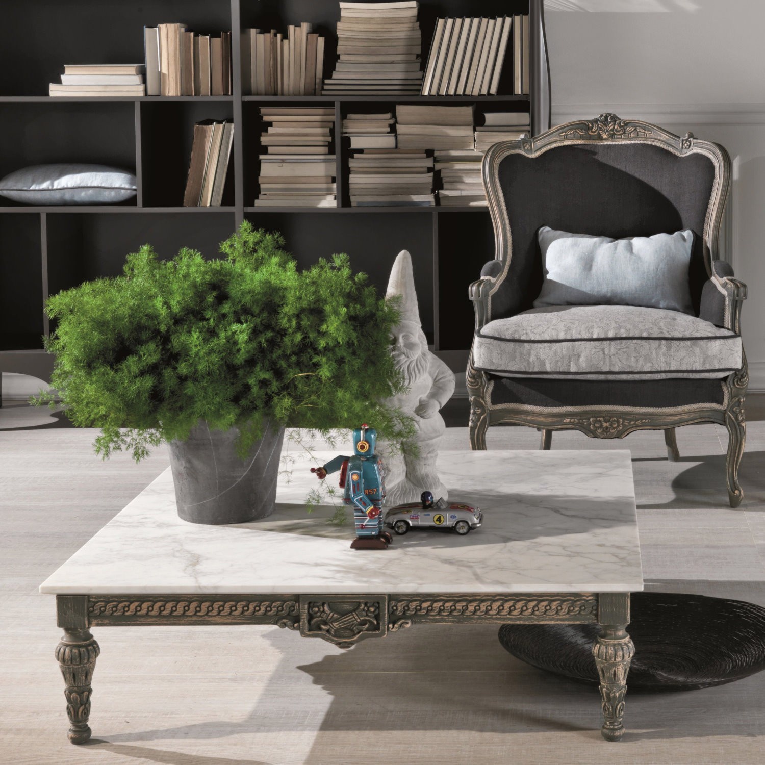 Table Land 3 from the Italian manufacturer Moda. Coffee table for living room pridivannogo. Made of solid wood, marble countertop. The frame is carved, handmade. The color in the catalog of the manufacturer, the model presents a natural wood color. The surface is treated with a patina. The style of furniture of the Baroque.