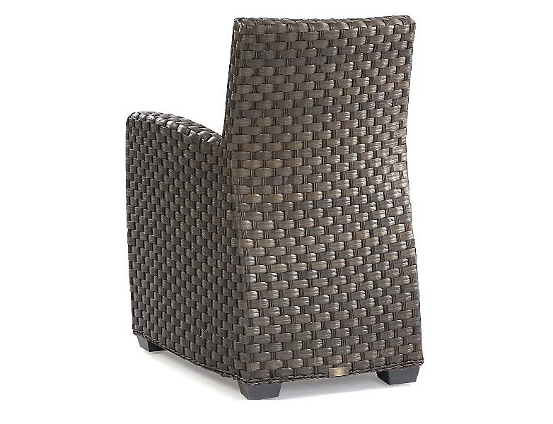 The Leeward Dining arm chair from American manufacturer Lane Venture. The model is designed for summer and outdoor furniture. The frame is made of hardwood and metal. The body is woven from rattan. The seat is supplemented with a removable pillow. Colors in the catalog range from the manufacturer. The modern design.
