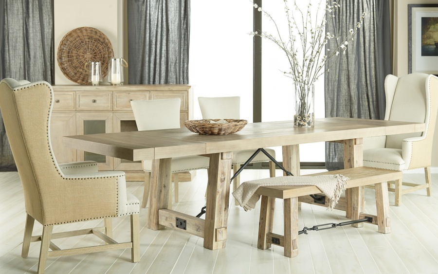 The Carter dining table from the collection of Traditions from the American manufacturer Orient Express Furniture. Folding rectangular design, the table is made in the loft style. The naturalness and simplicity of form is complemented by thoughtful details that make this table unique. Legs, beams and table top made of solid wood and carefully aged. The table-top as if assembled from pieces of wood, corners chipped. Extendible table top by means of metal fittings which are attached by hooks over the crossbar. Maximum width between supports mm. 1245 Table is available in two versions: color of coffee beans and color of natural wood. Combining fashion trends of furniture design with innovation in the field of component materials, the Orient Express Furniture company strives to achieve high quality and exclusivity of each product. Choosing the company's products Orient Express Furniture, You choose stylish and comfortable furniture.