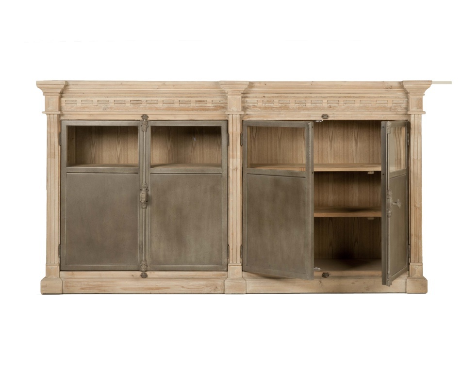The Grecian sideboard from the collection Bella Antique from an American manufacturer Orient Express Furniture. Carved sideboard, made in the Greek style, amazes with the perfection of forms and harmony of parts. This buffet Italians called the credenza. He is a Cabinet with double doors, inside there are two compartments for utensils with two shelves each. Frame, door and the base colors of the natural wood made of solid restored southern pine, paneled doors processed in the technique of "smoke" and glazed in the upper part. A carved geometric pattern on a projecting frieze and accessories in the antique Greek style complete the image. Due to its small size, buffet credenza can be used not only in the dining room but in any room that serves food and drinks. Combining fashion trends of furniture design with innovation in the field of component materials, the Orient Express Furniture company strives to achieve high quality and exclusivity of each product. Choosing the company's products Orient Express Furniture, You choose stylish and comfortable furniture.