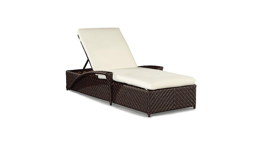 Chaise lounge Stackable Pool Side Bearings from an American manufacturer Lane Venture. The frame is made of wood and metal. The housing is a rectangular woven rattan with a soft mattress. Model with adjustable backrest. Designed for summer furniture in modern style.