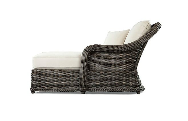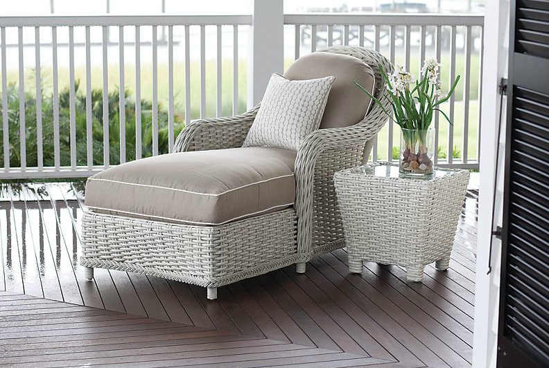 The Classic lounger from the American manufacturer Lane Venture. Frame high back rolling in the armrests are made of metal and wood. Model rattan furniture is for outdoor furniture in modern style. Finish - from the range of the company. Back and seat with soft mattress and decorative pillows.