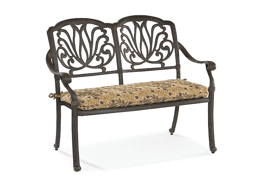 Bench Charleston from the American manufacturer Lane Venture. The model with armrests is designed for summer and outdoor furniture. The frame is made of cast metal. Seat with removable cushion. Colors in the catalog range from the manufacturer. The modern design.