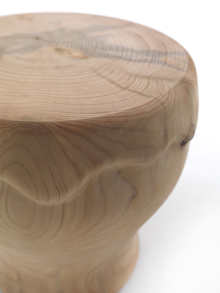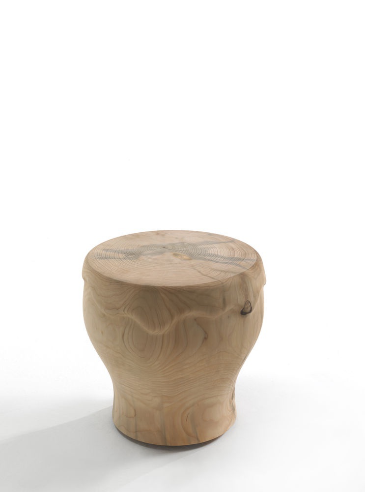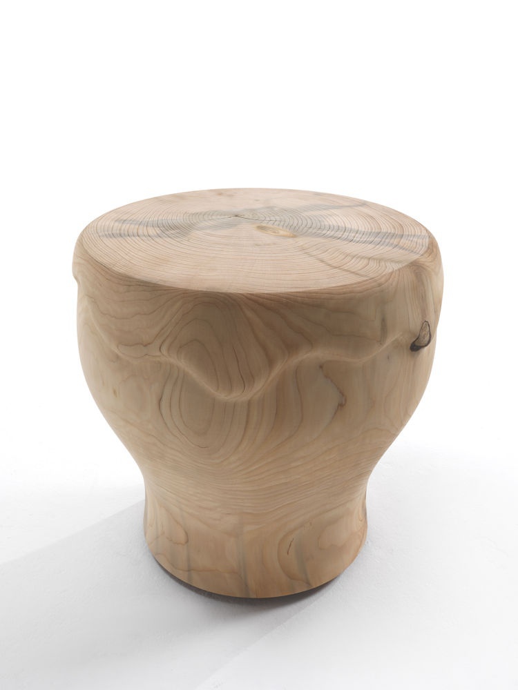 Bier stool from the Italian manufacturer Riva 1920. Model with a round seat carved from solid cedar. The design is executed in modern style.