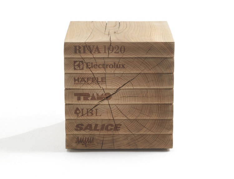 Libri stool from the Italian manufacturer Riva 1920. The model is carved from a single trunk of cedar. The product in the form of a pile of books. The design is executed in modern style.