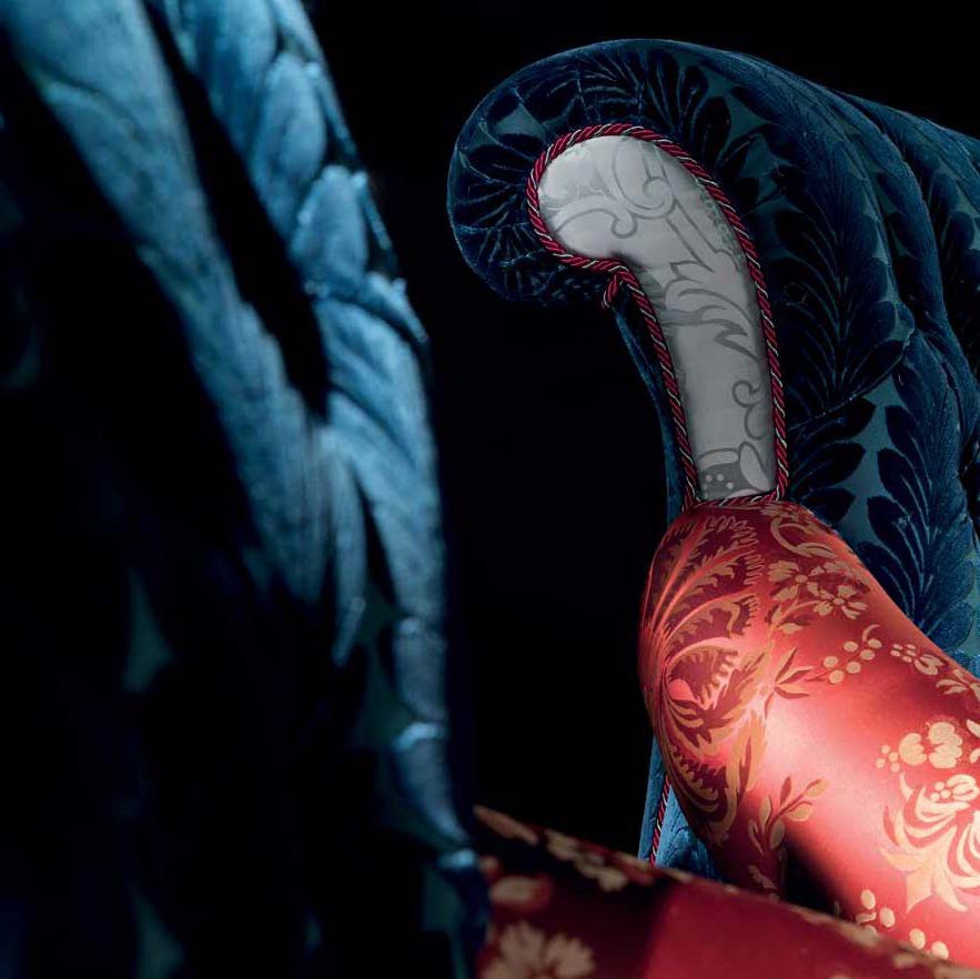 A chair from the Italian manufacturer Jumbo Collection. The model is made in the Baroque style, collection Crystal. The frame is made from solid wood, filler - foam, upholstery - textiles from a range of campaigns. Colours in stock.