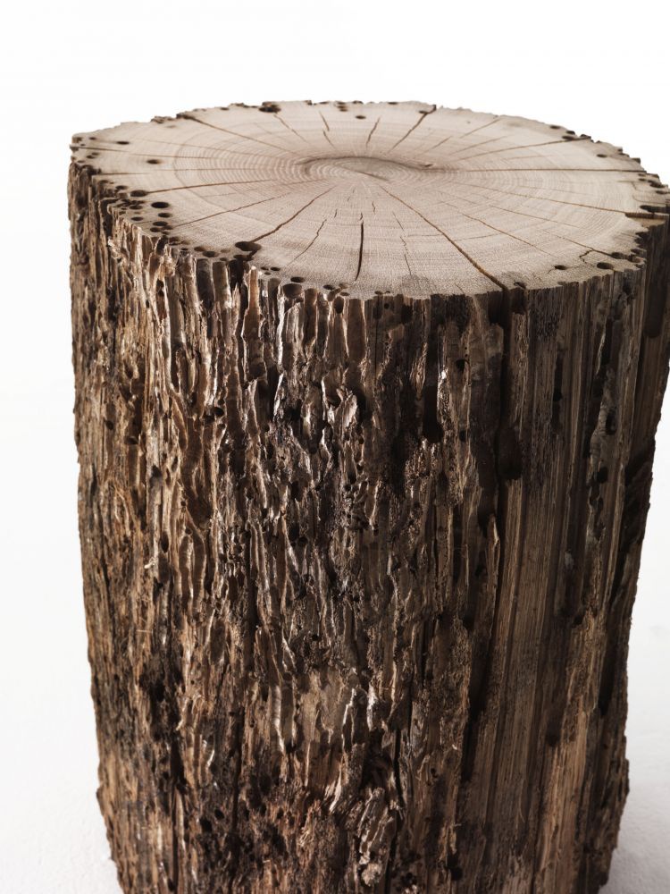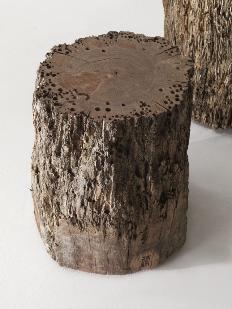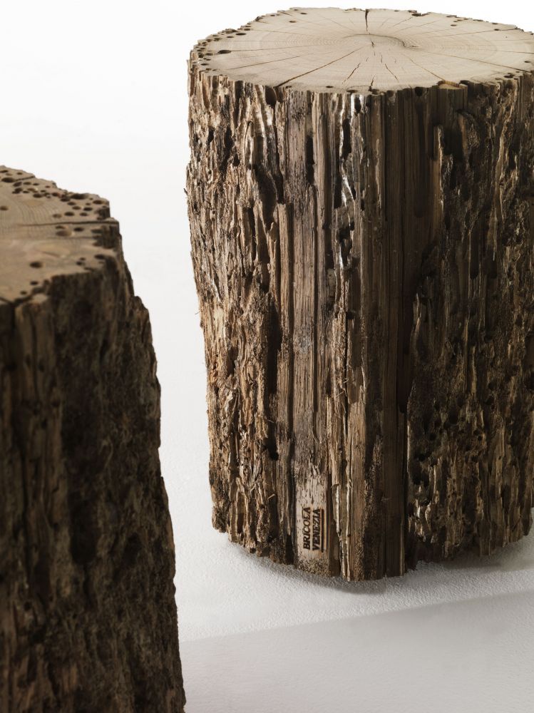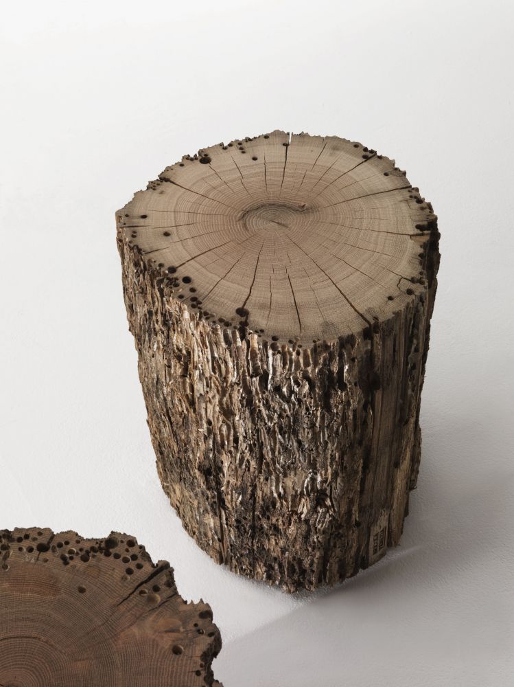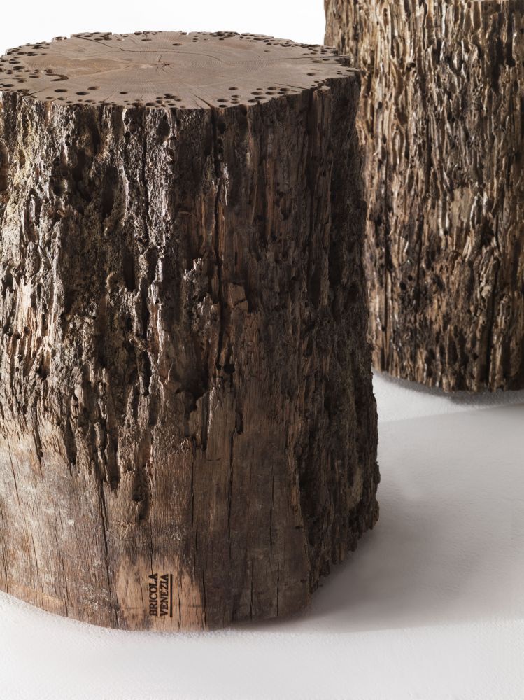 Bricola Venezia stool from the Italian manufacturer Riva 1920. The product is carved from a solid trunk of oak. Sections were smoothed, and the sides preserved in its original form.