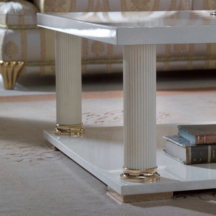 Coffee table rectangular Magna Plus from the Italian manufacturer Turri. Wooden structure, hand decorated, gloss polyester finish color erable. As decor - parts made from brass. The model is made in classic style, a perfect choice for a living room.