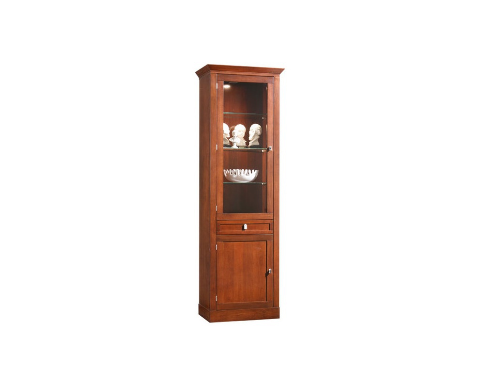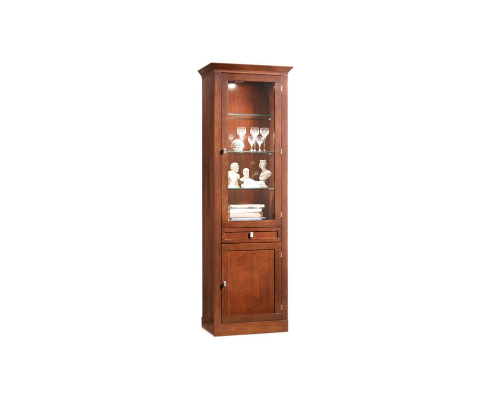 Showcase with a drawer in a contemporary style Sophia from the Italian manufacturer Selva. Showcase made of basswood, finished with veneer of cherry. Drawer with self-closing mechanism, veneered birch. The model has two doors - glass and wood. There is a version with right-hand or left opening. Showcase Sophia will look luxurious and stylish in any interior.