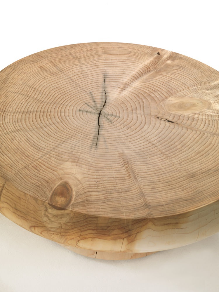Kenobi coffee table from the Italian manufacturer Riva 1920. Model with a round top. Top support made of solid wood. Perfect as a Central table in the living room.