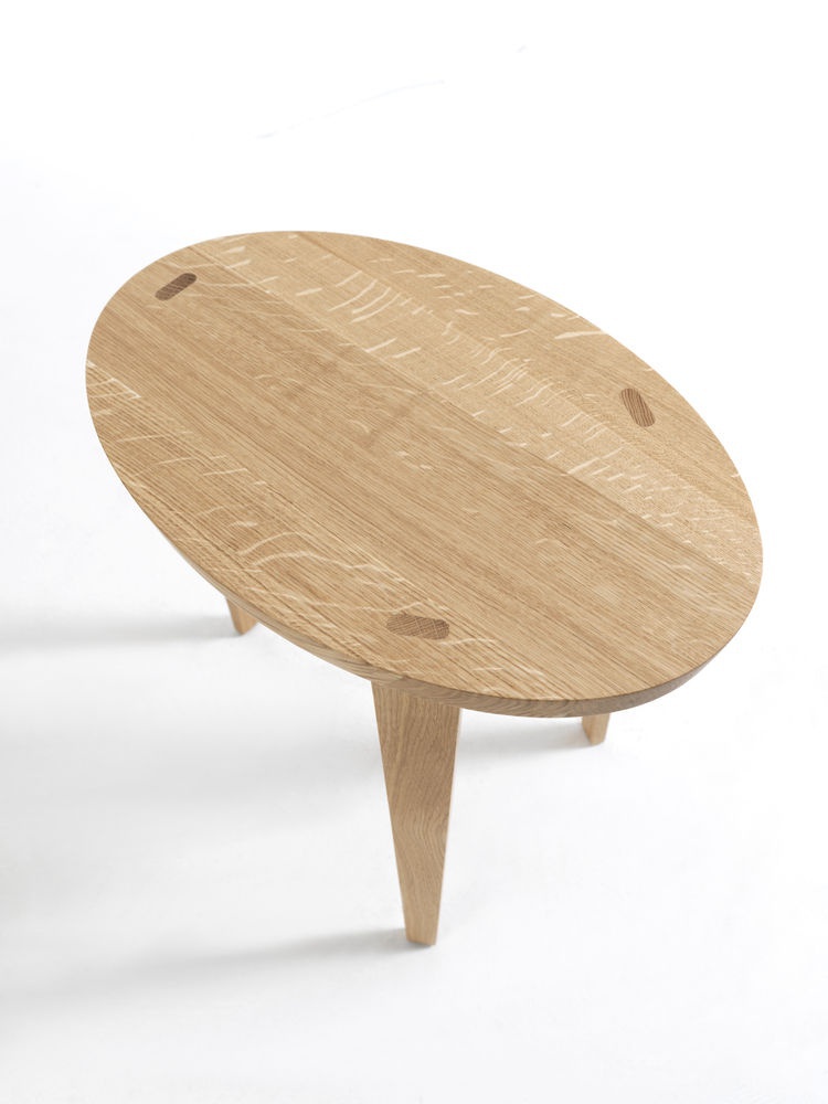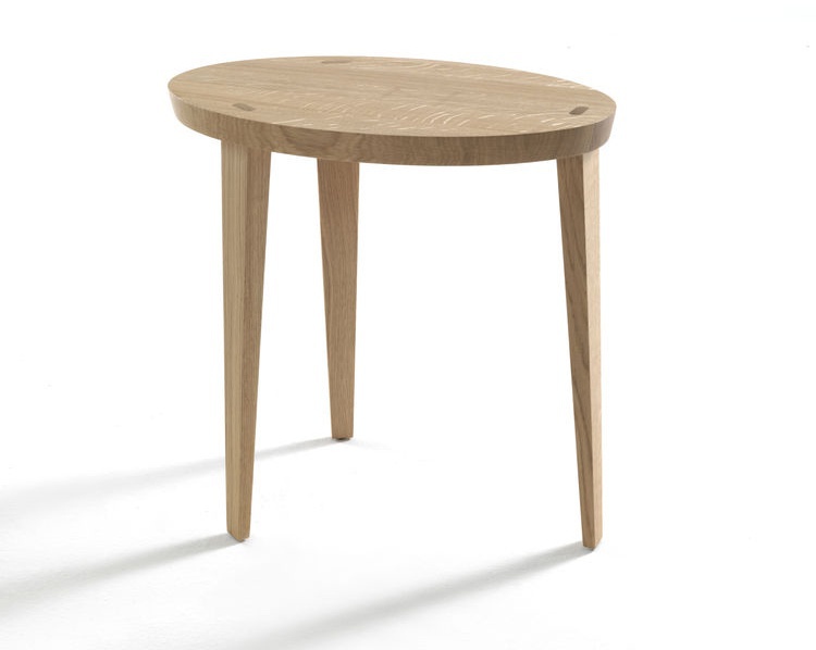 Tao Ovale coffee table from the Italian manufacturer Riva 1920. The model is available from different wood species from a range of companies. A small table on three legs. Design in modern style.