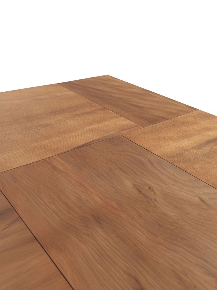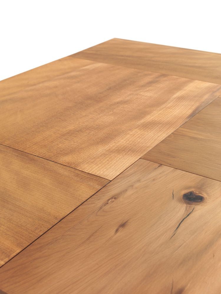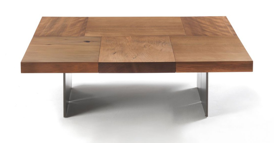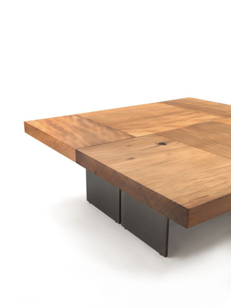 Auckland Block coffee table from the Italian manufacturer Riva 1920. The model with the top, which consists of several square parts cut from a Kauri tree. The top is smoothly polished surface attached to the base through metal screws.