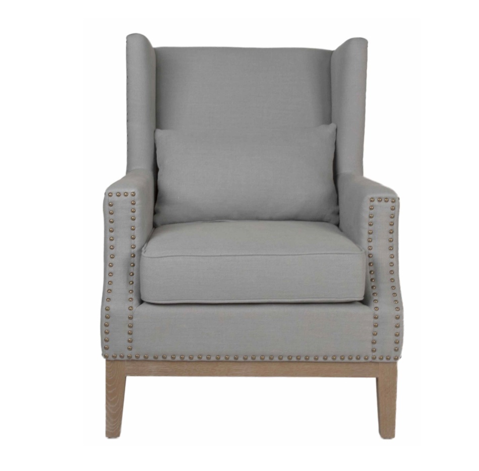 The Calista chair from the collection of the Villa from the American manufacturer Orient Express Furniture. Designed in the art Deco style chair will fit perfectly into modern interior living room, bedroom and even a library. The frame and legs of chairs color of milk chocolate carved from solid spruce. A comfortable deep chair with soft back, side caps and padded arms ensure total comfort while reading or relaxing. Augmented soft pillow under the lower back, the contour is trimmed with a double row of gilt studs. Armchair upholstered in fabric imitating Belgian linen canvas and is available in two colors: gray and blue. Combining fashion trends of furniture design with innovation in the field of component materials, the Orient Express Furniture company strives to achieve high quality and exclusivity of each product. Choosing the company's products Orient Express Furniture, You choose stylish and comfortable furniture.