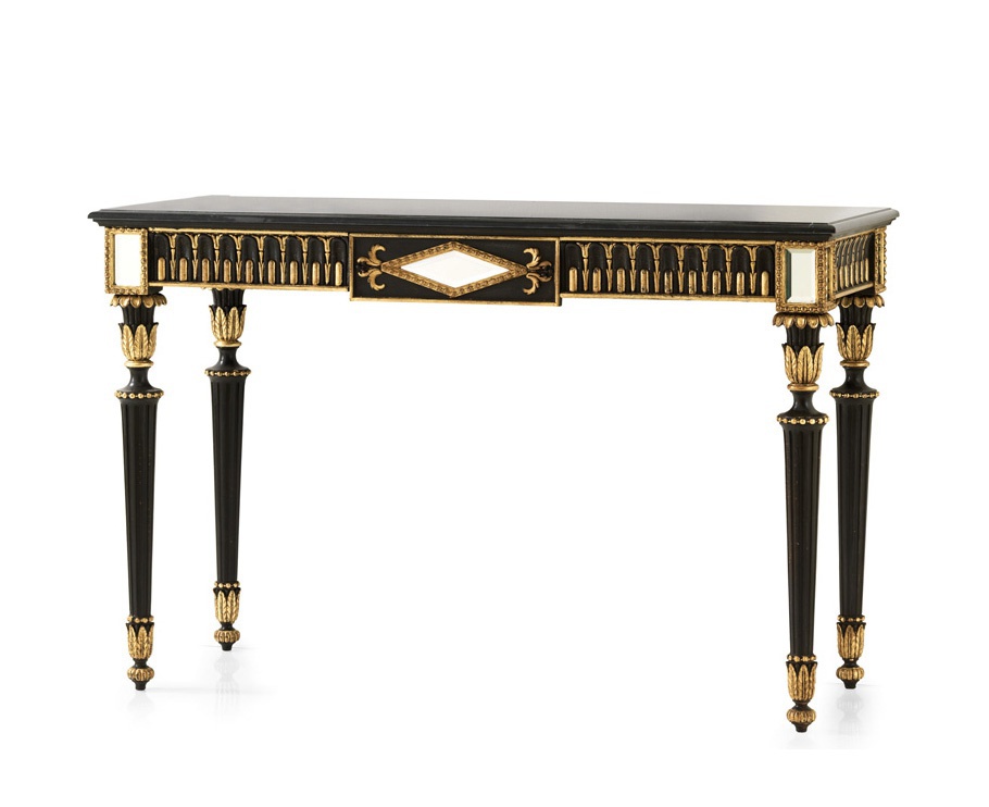 Console from the Italian producer Roberto Giovannini. Model on figured legs. Material - wood. Finishing - varnish, Golden foil, patina or artificial aging. Decoration is the decorative carving handmade. Made in a classic style.