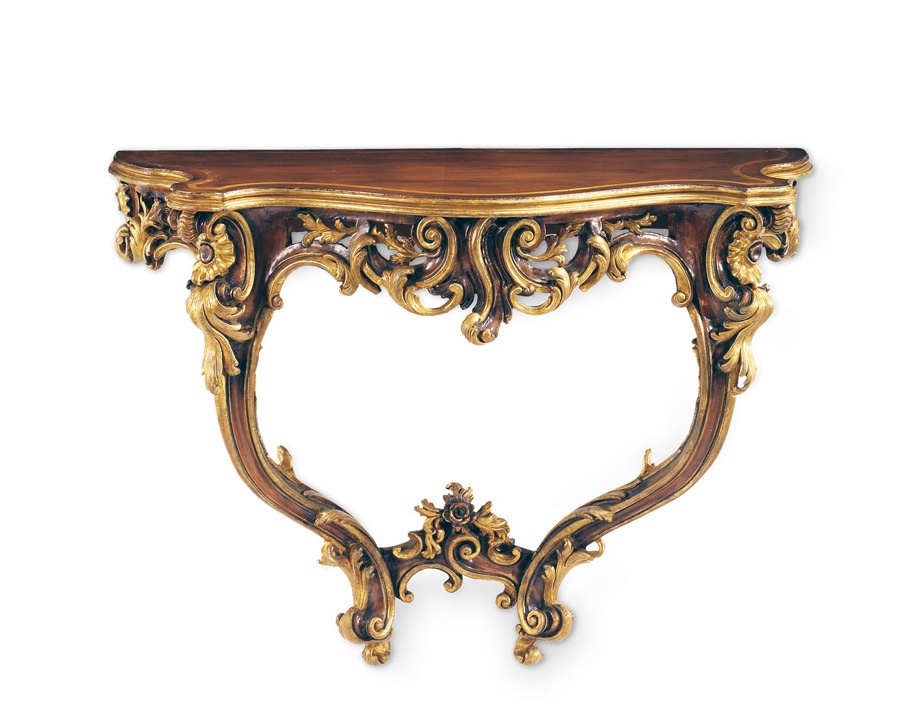 Console from the Italian producer Roberto Giovaninni. The model is made from natural wood. The finishing - varnish. Decorative items handmade in gold plated finish. The style is classic. Colours in stock.