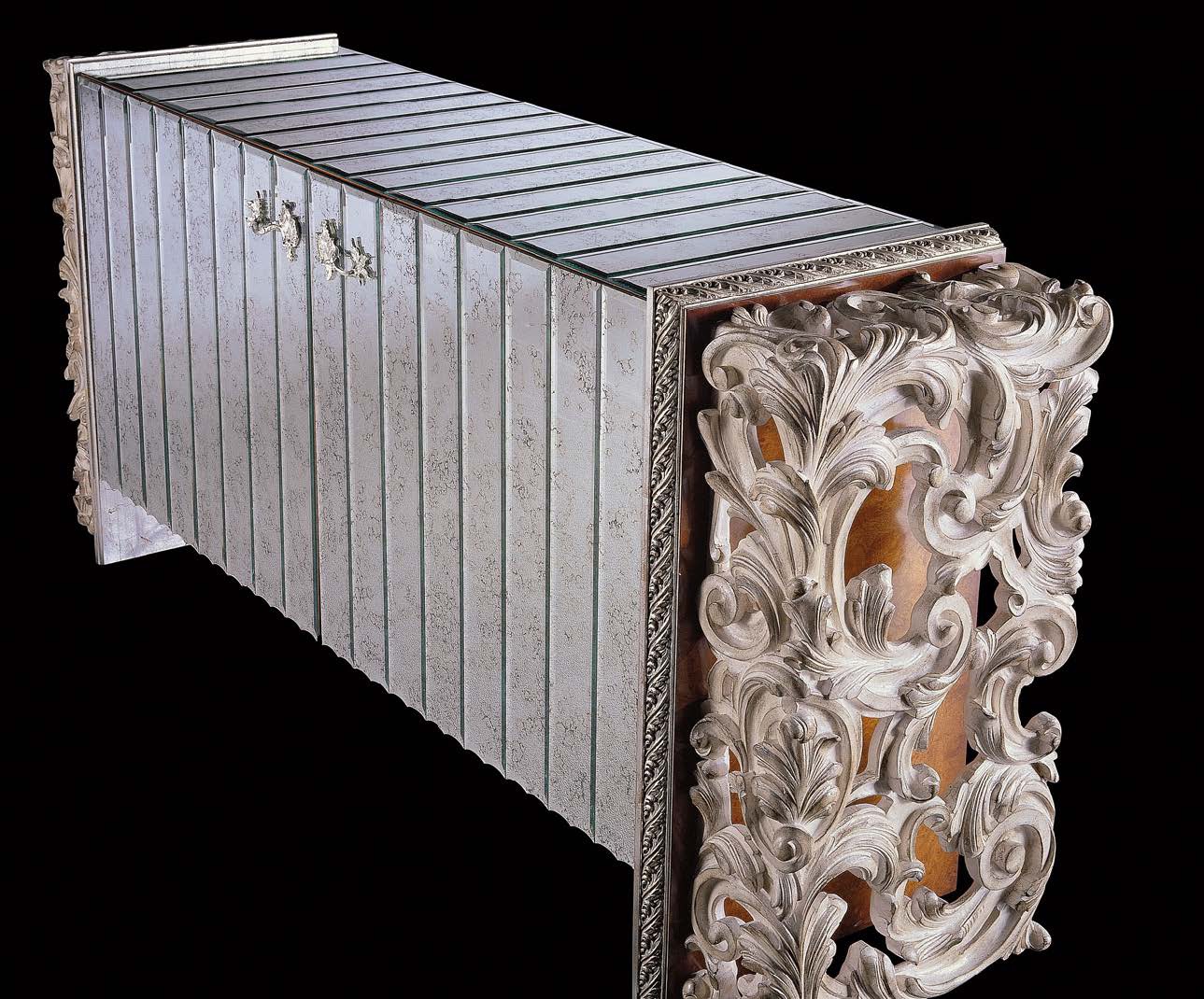 Stand from Italian manufacturer Jumbo Collection. The original model of the Baroque, a collection of Manet. Frame made of natural wood of hard sorts (Lipa) and antique glass, which gives a special brightness. The model is decorated with decorative carved floral elements. Varnishing is made with antique wax. Colours in stock.