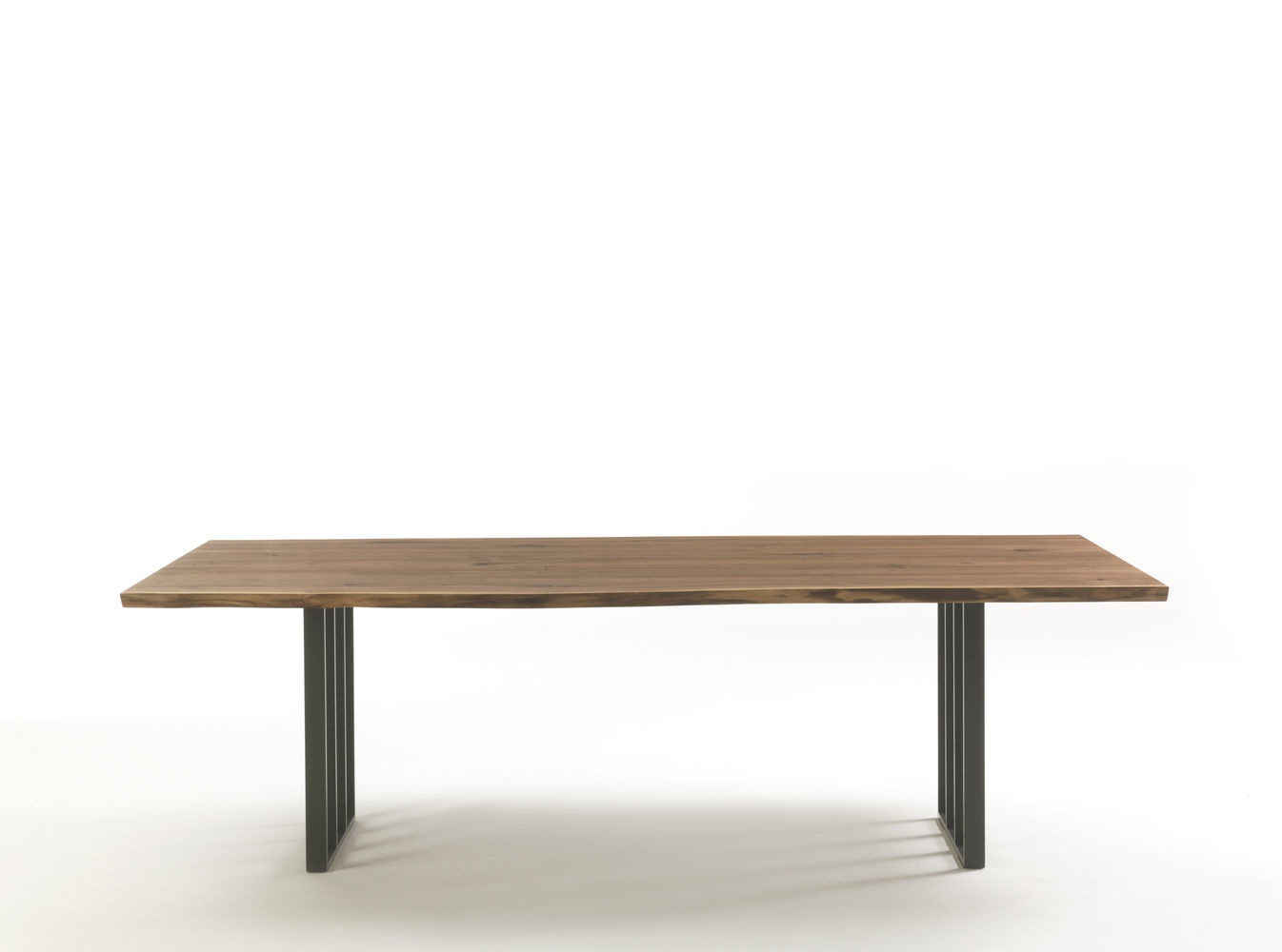 The Lex table from the Italian manufacturer Riva 1920. Dining model with rectangular top made of solid oak or walnut. The frame is made from metal with finishes in the catalog of the company.