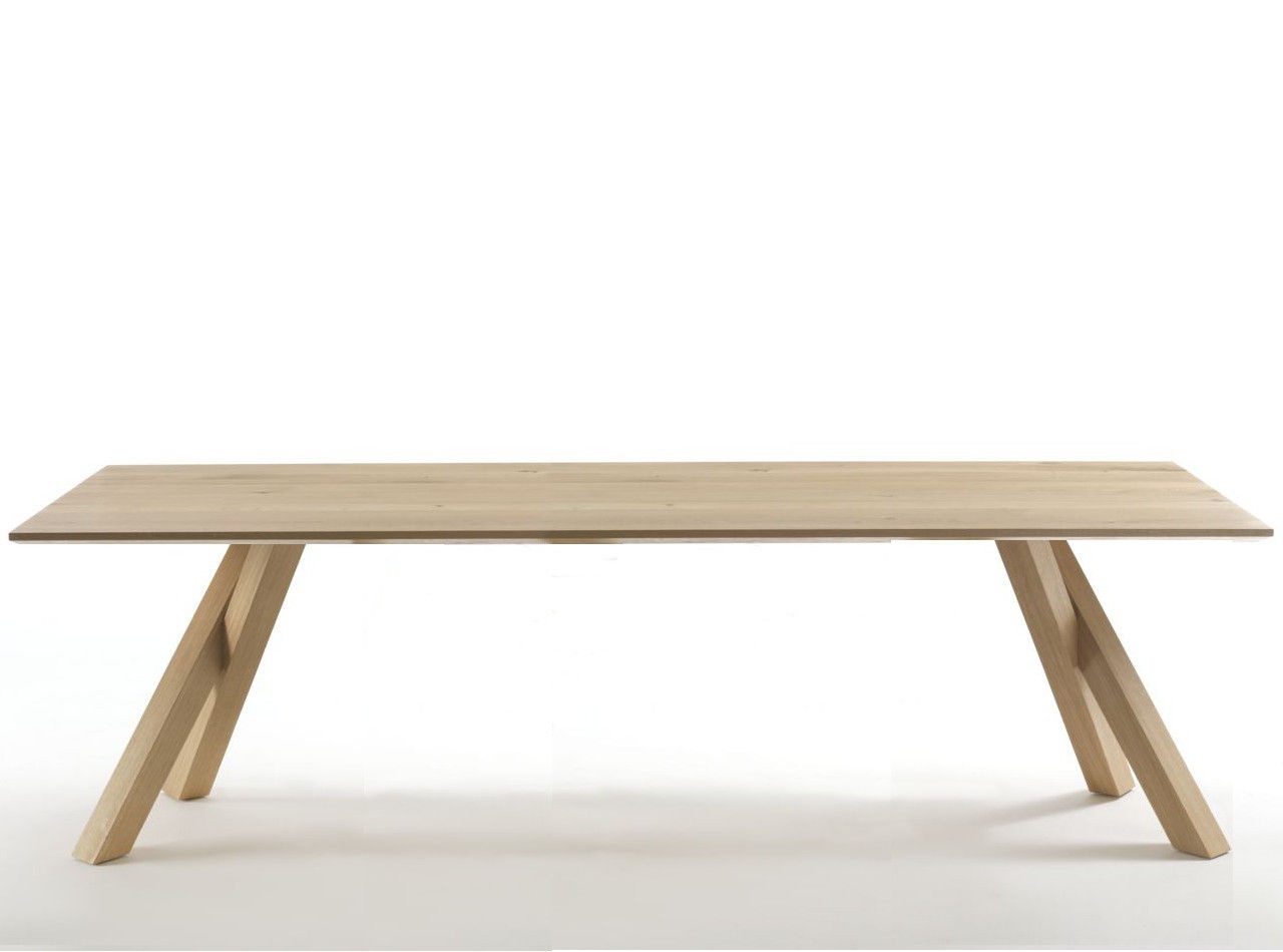Table Snap Table from the Italian manufacturer Riva 1920. The model with rectangular top made entirely of solid wood. The manufacturer offers a variety of wood species in stock. Dining table has an attractive image and receives different interpretations depending on under what corner to look.