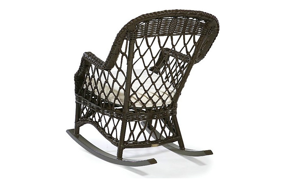Rocking chair Camino Real Rocker from the American manufacturer Lane Venture. Made of woven rattan. Designed for summer and outdoor furniture. Frame made of hard wood and metal. The model with armrests and soft seat cushion. The cover is made of waterproof fabric. Colors in the catalog range from the manufacturer. The modern design.