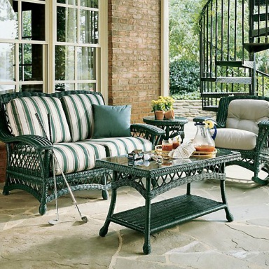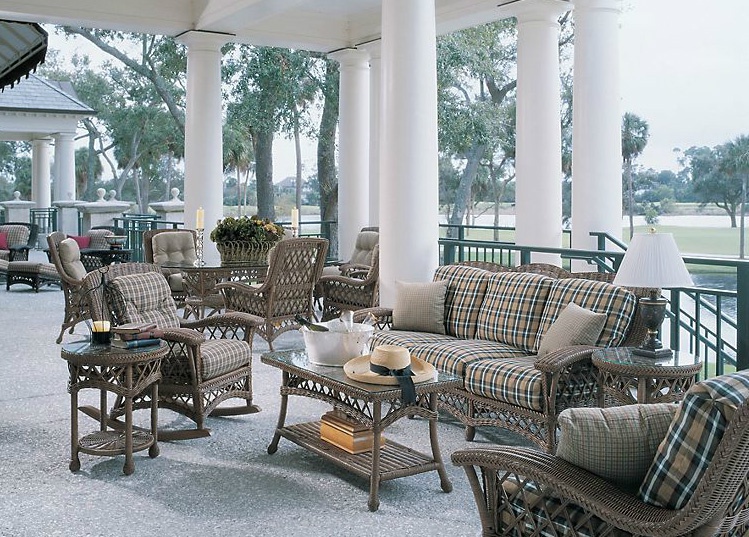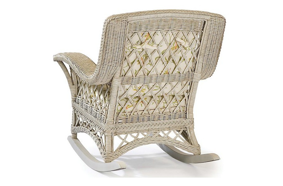 The rocker Chandler Bay Rocker from the American manufacturer Lane Venture. Made of woven rattan. Frame made of hard wood and metal. Model with wide armrests and removable cushions seat and back. The cover is made of waterproof fabric. Colors in the catalog range from the manufacturer. Designed for summer and outdoor furniture.