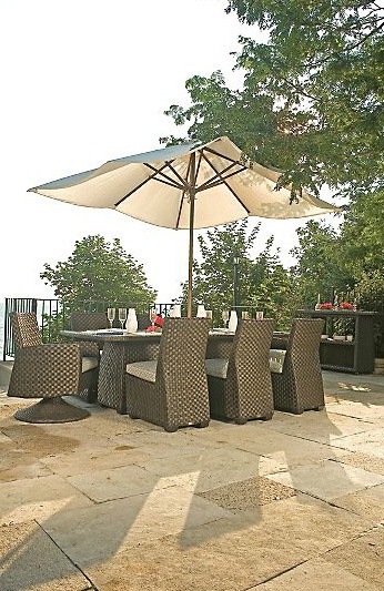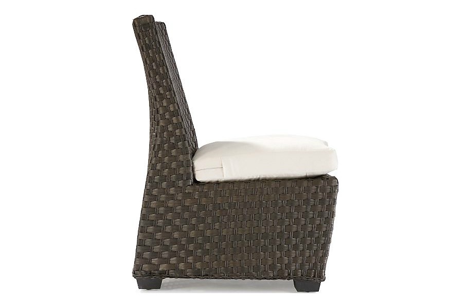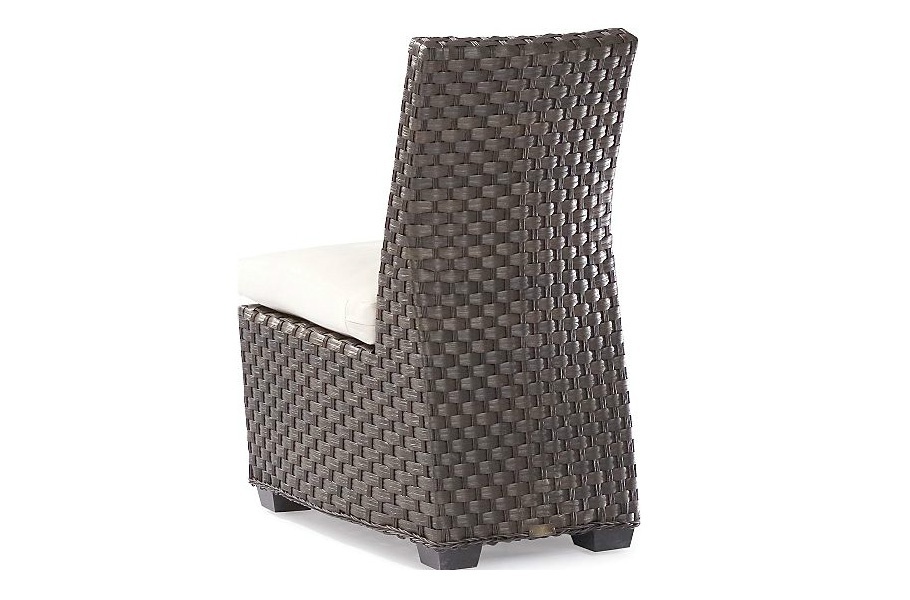The Leeward Dining Side chair from American manufacturer Lane Venture. The model is designed for summer and outdoor furniture. The frame is made from wood of firm breeds. The body is woven from rattan. The seat is supplemented with a removable pillow. Colors in the catalog range from the manufacturer. The modern design.