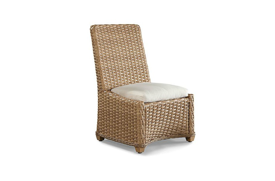 The Stationary Dining chair Moorings from the American manufacturer Lane Venture. The model is designed for summer and outdoor furniture. The frame is made of hardwood and metal. The body is woven from rattan. The seat is supplemented with a removable pillow. Colors in the catalog range from the manufacturer.