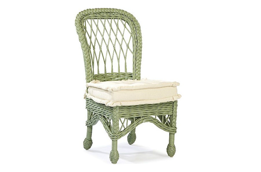 The Natchez Side chair from American manufacturer Lane Venture. The model is designed for summer and outdoor furniture. The frame is made of hardwood and metal. The body is woven from rattan. The seat is supplemented with a removable pillow. Colors in the catalog range from the manufacturer. Classic design.