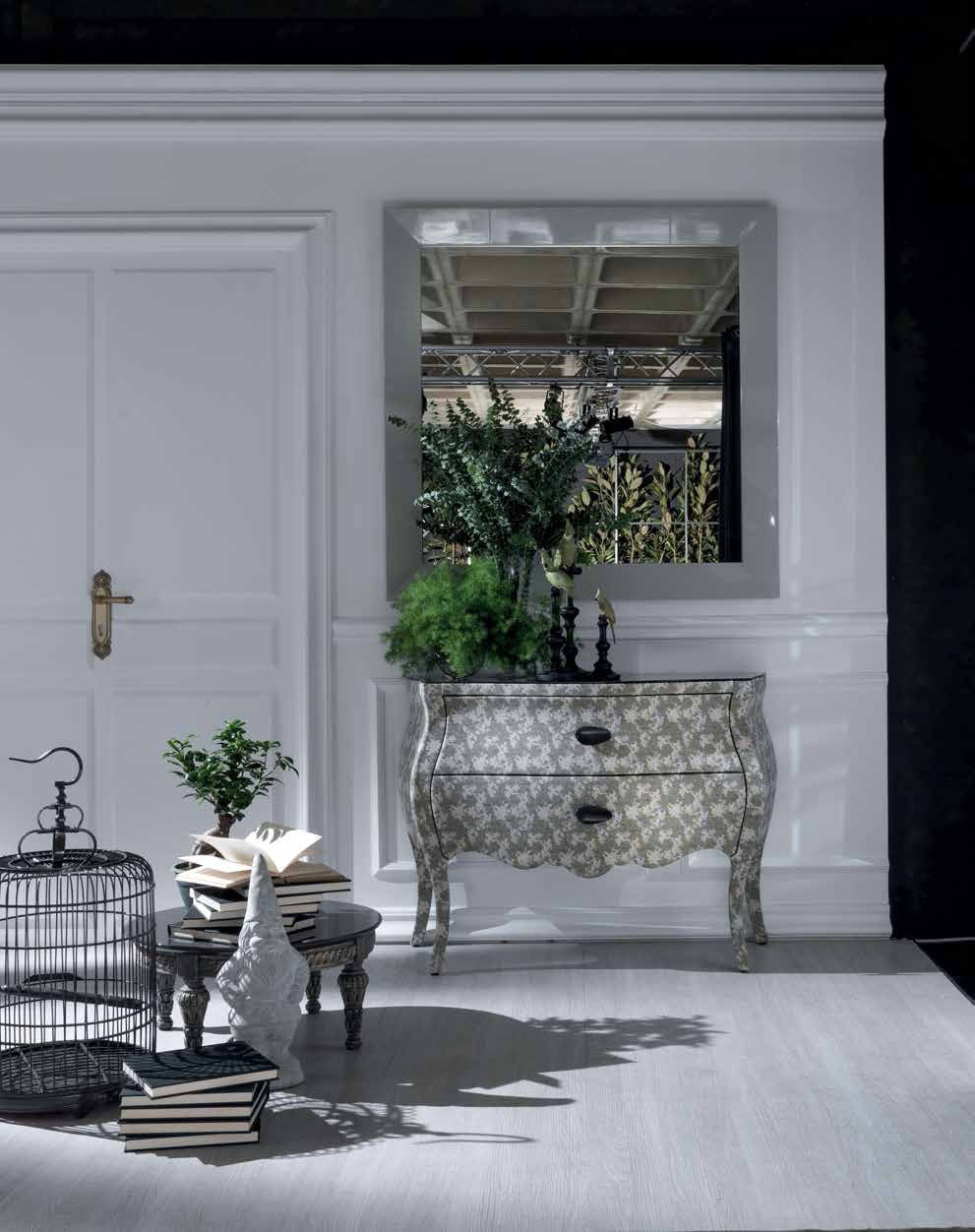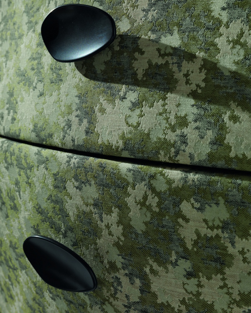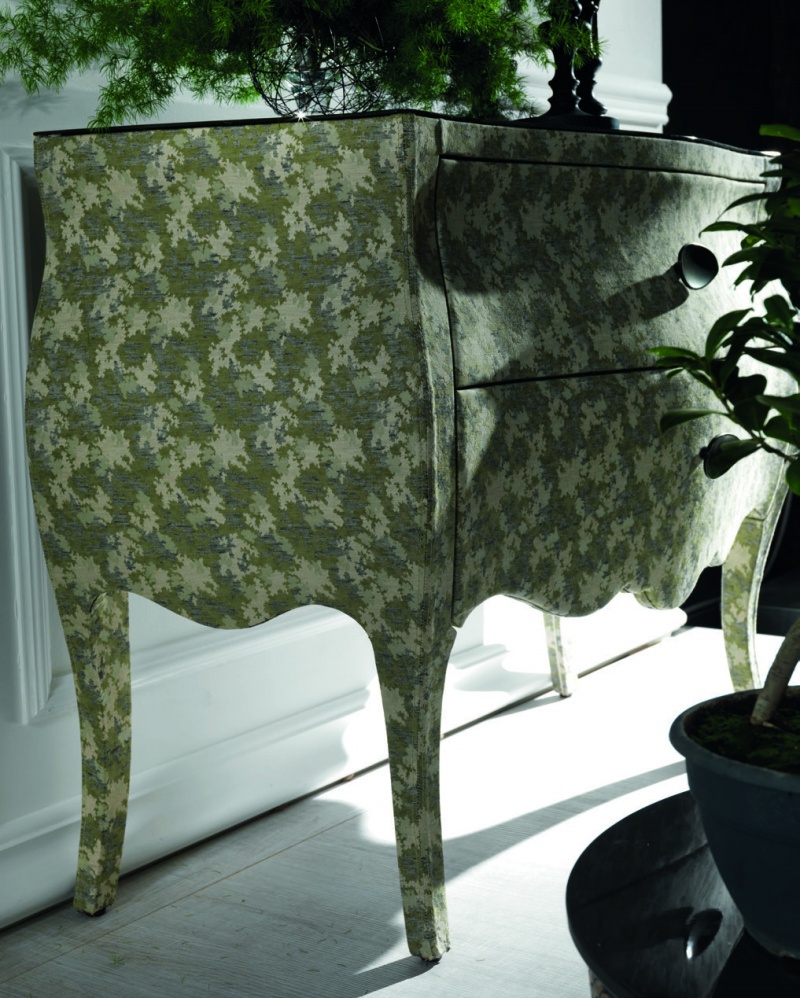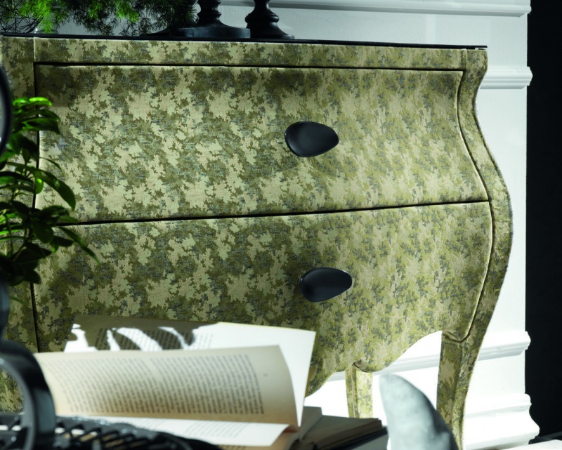 The Tailor Made chest of drawers from Italian manufacturer Moda. Materials used: body - solid wood, furniture - brass, counter top - tempered glass, textiles - upholstery. Equipped with two drawers for storage. Body with convex sides and legs - Cabriole. Style - glamour. The chest is decorated with a textile cloth.